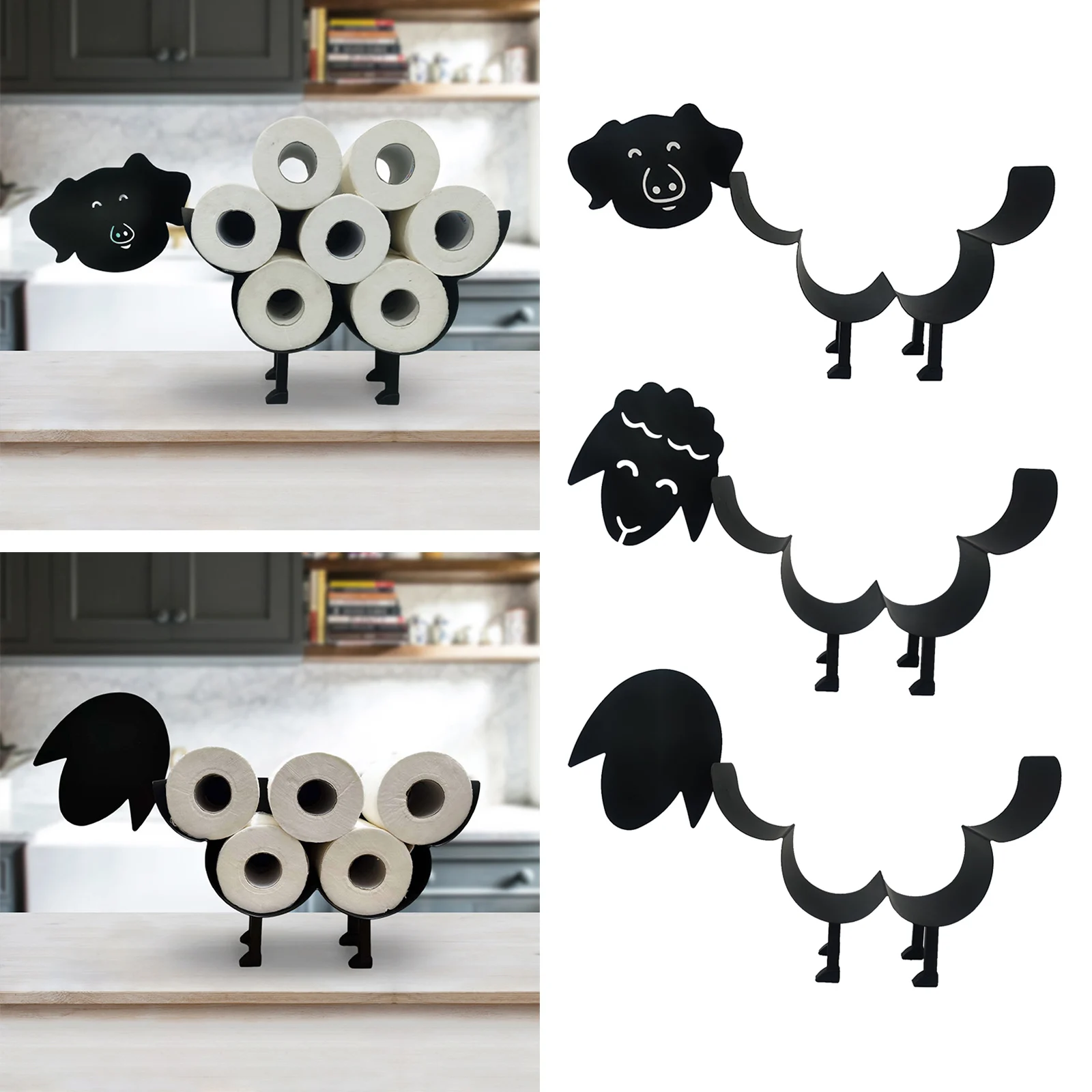 Металлическая железная подставка для туалетной бумаги, прочная и долговечная.Свободно стоя на столешнице или полу, экономия пространства и декоративные.Новый дизайн головы мультяшного животного, может вмещать до 7 рулонов бумаги или полотенец для ванной комнаты.Водонепроницаемое покрытие, выдерживает коррозию и влажность в ванной.Подходит для кабинета, офиса, отеля, дома, гостиной, украшения.