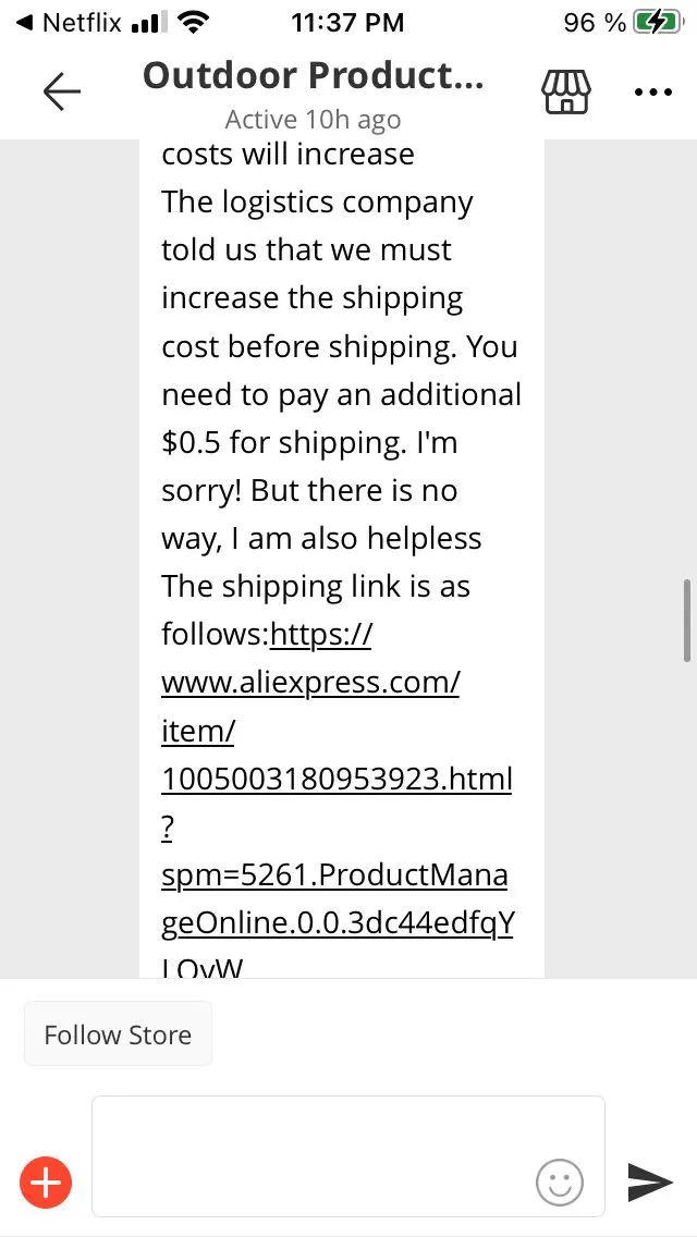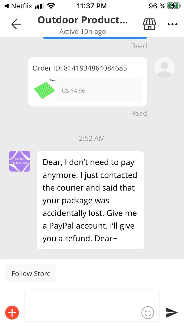 I was very disappointed with this seller. First they sell me an item with free shipping. Then asked me to pay $.99 for shipping. Then asked for me to pay $.50 for shipping. When I complained they said “we’ve lost your order...we can pay you on PayPal” Then they claimed they shipped the item!!! So I couldn’t file a dispute!!! AliExpress was awesome to help resolve the situation. I don’t have PayPal. AliExpress gave me the opportunity to file a dispute despite the seller lying and saying it was shipped. I got a full refund and am happy. But, I will NEVER shop at this seller again. Don’t buy from them!!!