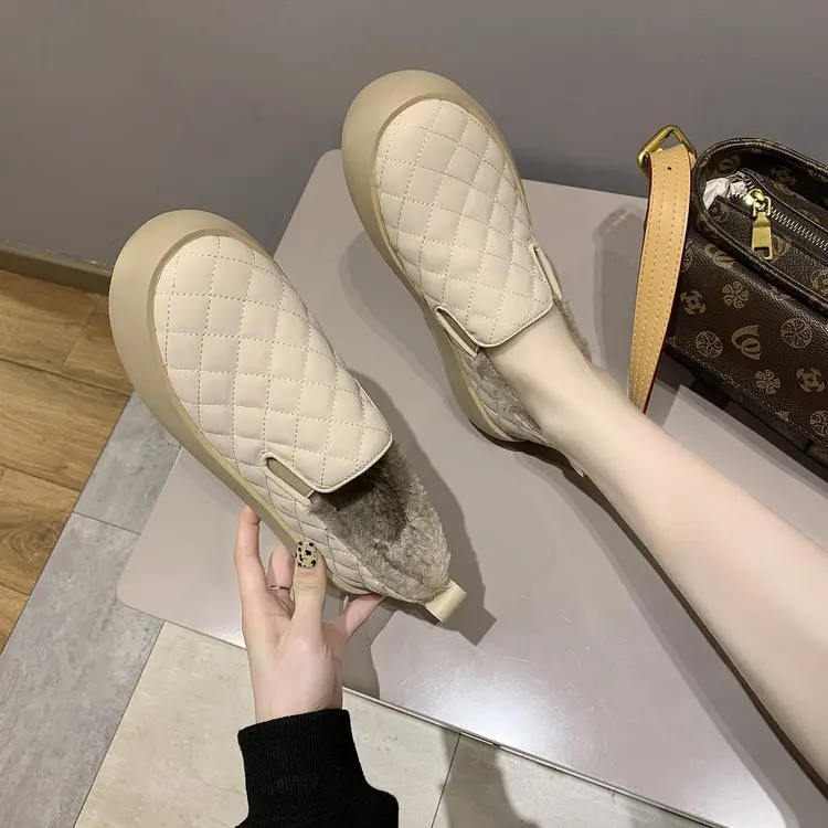 Зимние женские черные бежевые ботинки с плюшевой подкладкой, ботиль...