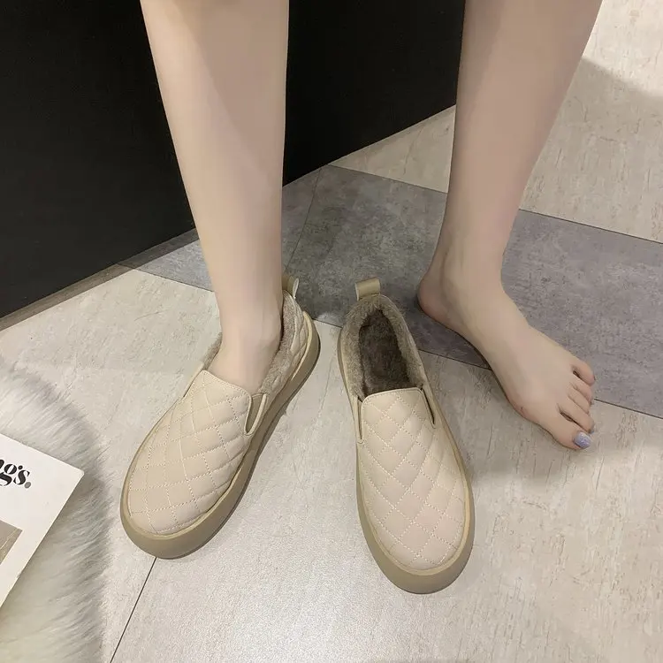 Женские туфли ручной работы, плюшевые меховые лоферы, плоская подош...