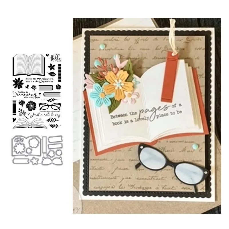 Шаблон для чтения книг, очков, цветов, металлические штампы и прозрачные штампы для скрапбукинга, трафарет, печать, лист, Декор, тиснение