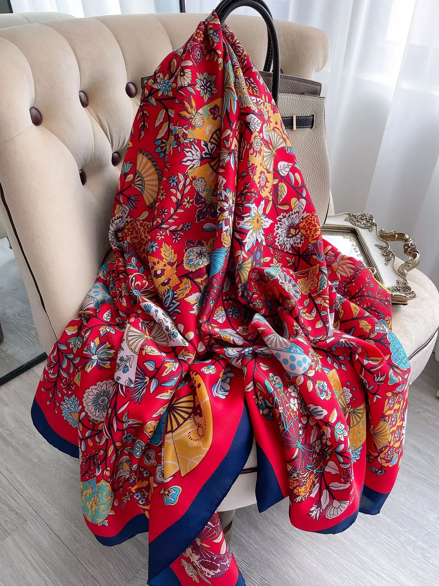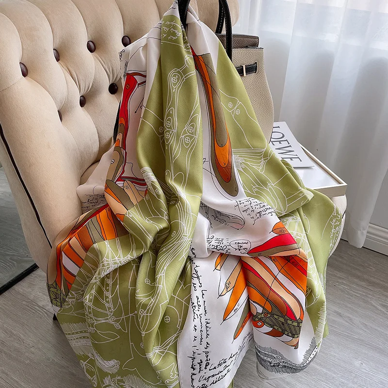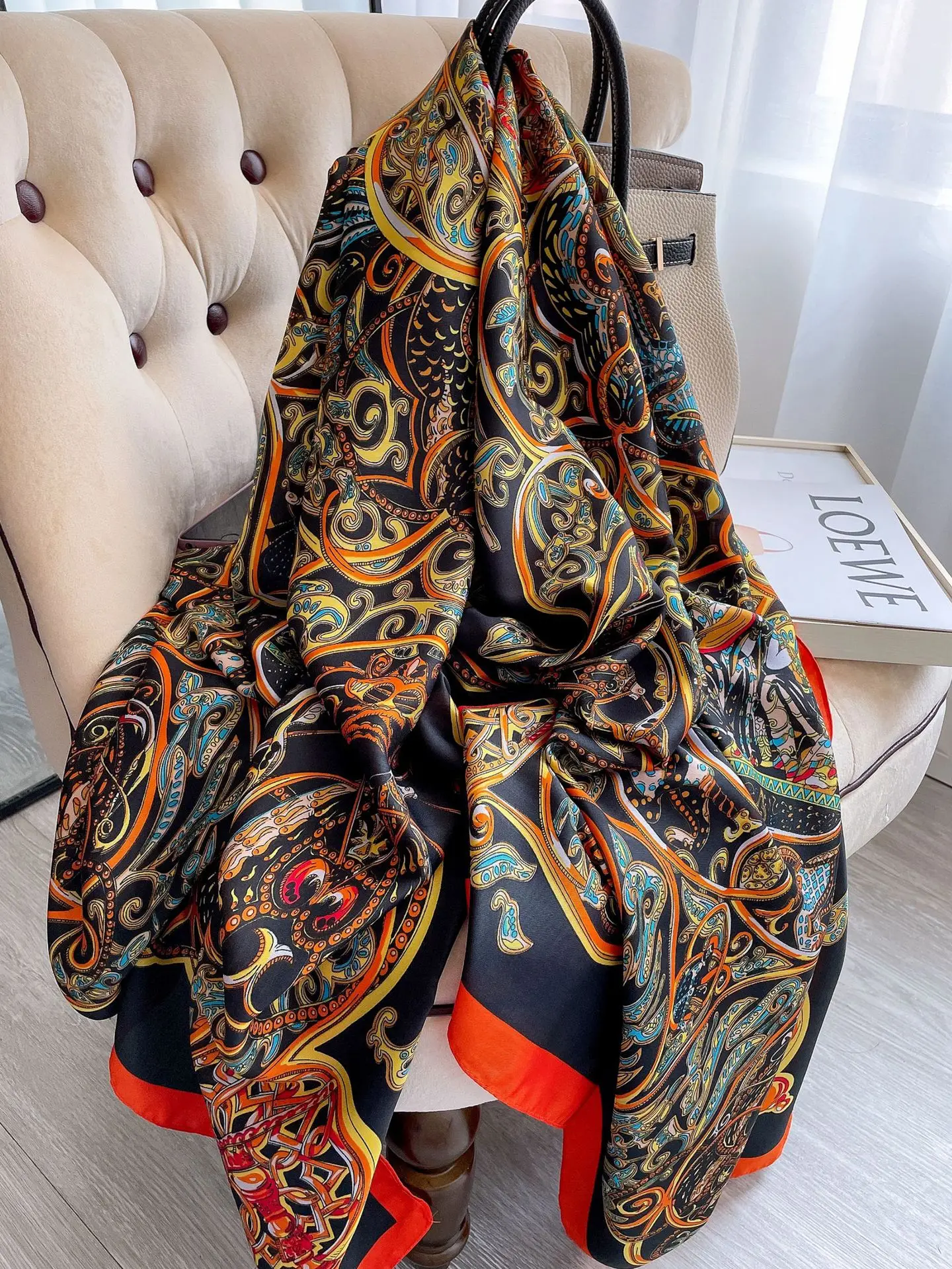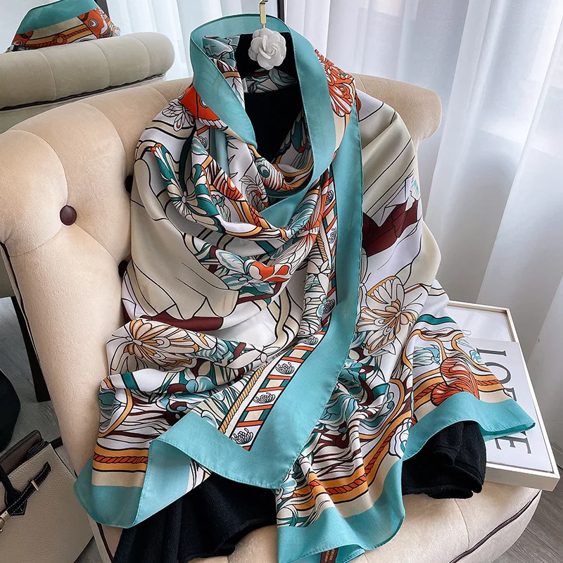 Брендовый дизайнерский шелковый шарф Женская бандана длинные шали шарфы зимние шарфы из пашмины женский роскошный пляжный хиджаб платок 90*180 см