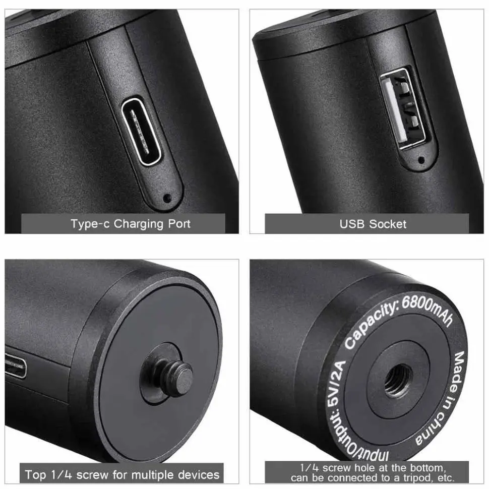 Рукоятка-монопод, для использования со смартфоном, экшн камерой или даже лёгкой цифровой камерой. Встроенный аккумулятор на 6800 мАч увеличивает срок жизни батареи. Использование оборудования облегчает создание эффектных селфи, позволяет вести портретную и общую съемку