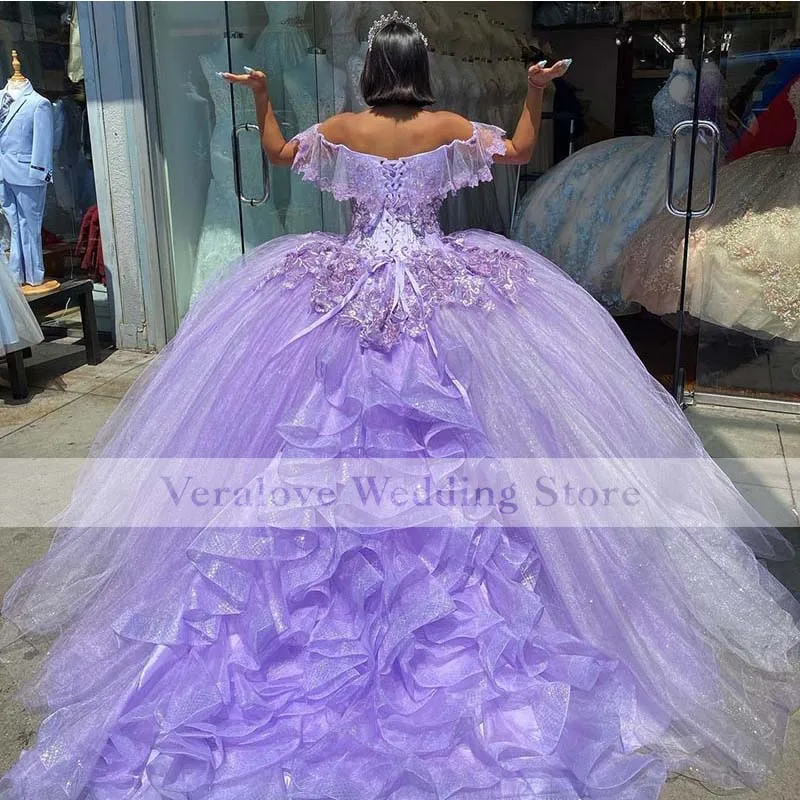 Женское Пышное Бальное Платье, кружевное платье лаванды с аппликацией для девушек 15-16 лет, 2021