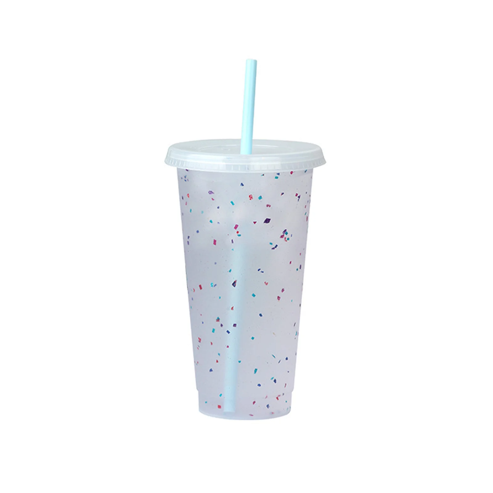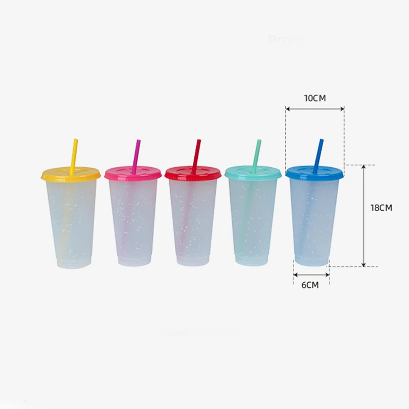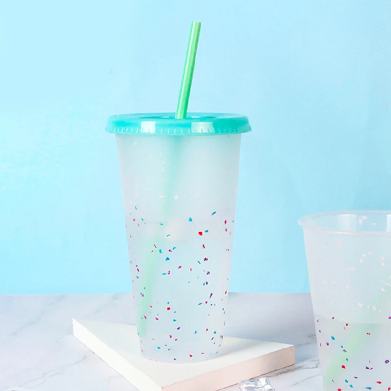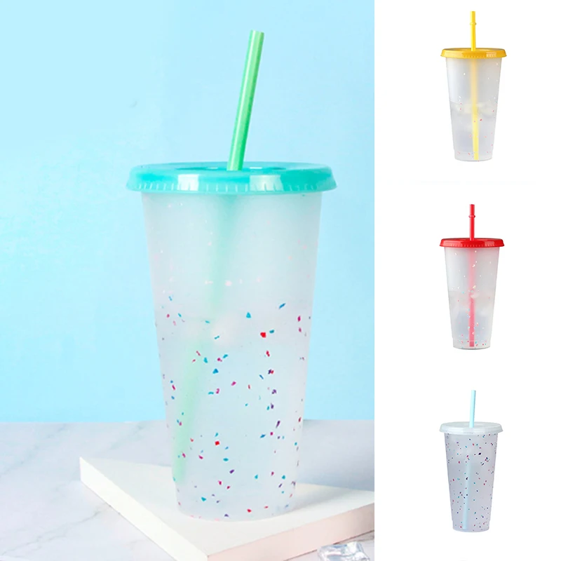Стакан с крышками и соломинкой, меняющий цвет, многоразовый, для хо...
