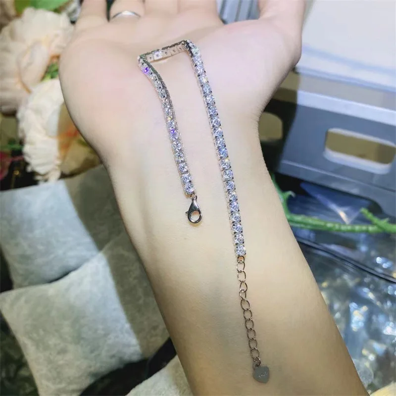 Браслет с муассанитом Женский, роскошное свадебное Ювелирное Украшение с платиновым покрытием, с бриллиантом D цвета VVS