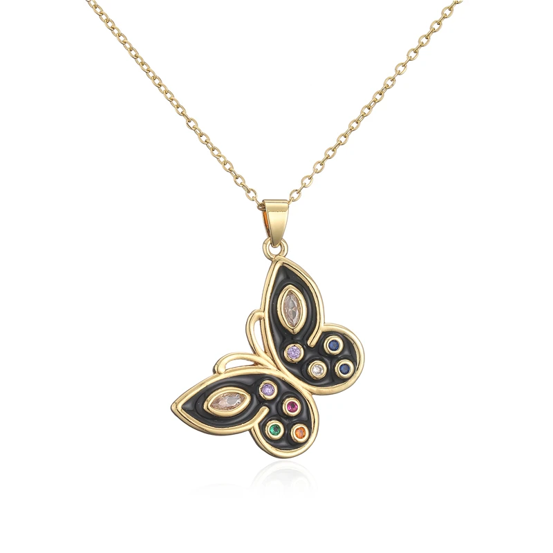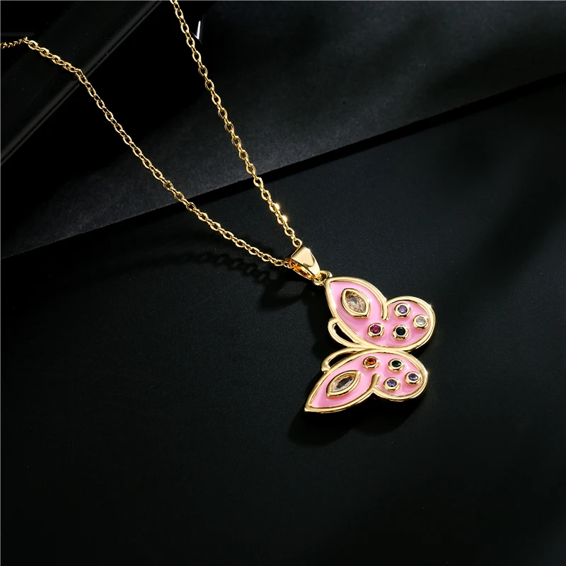 Ожерелье женское медное с подвеской в виде бабочки, золотого цвета, 2021