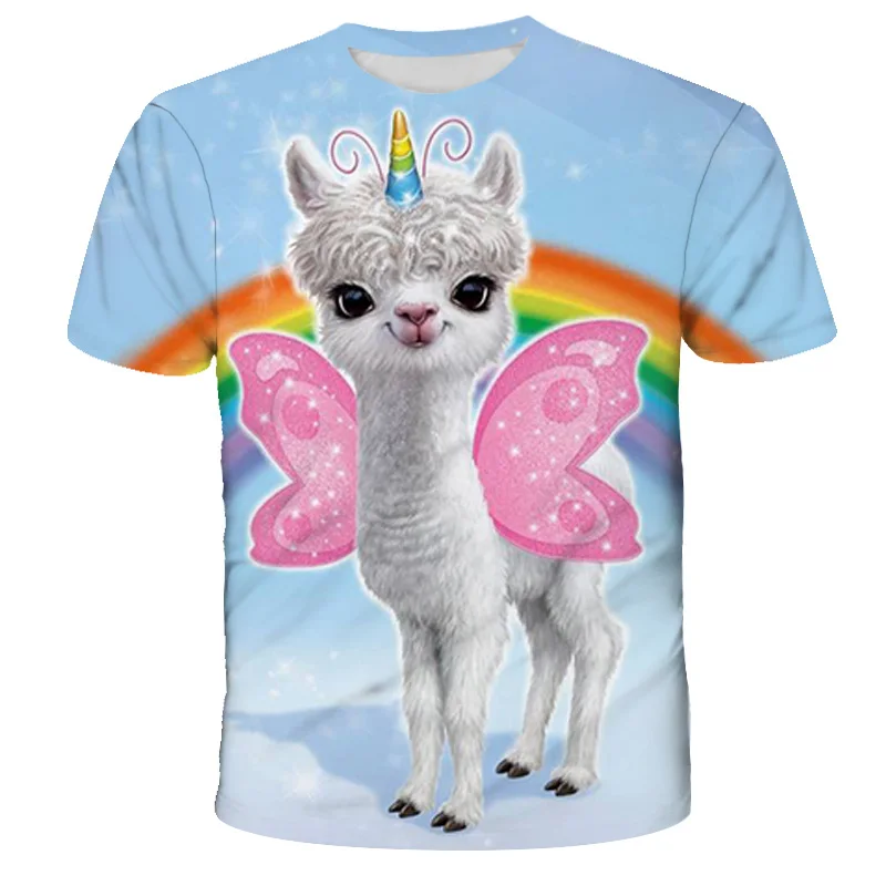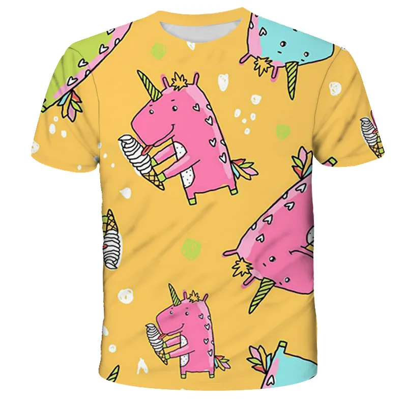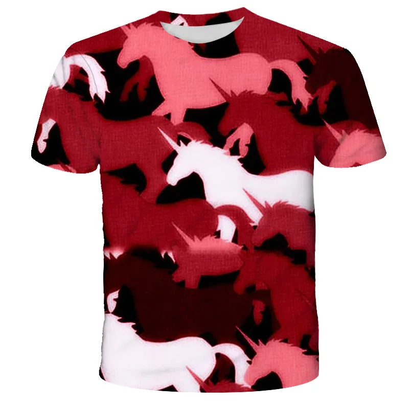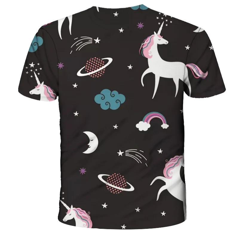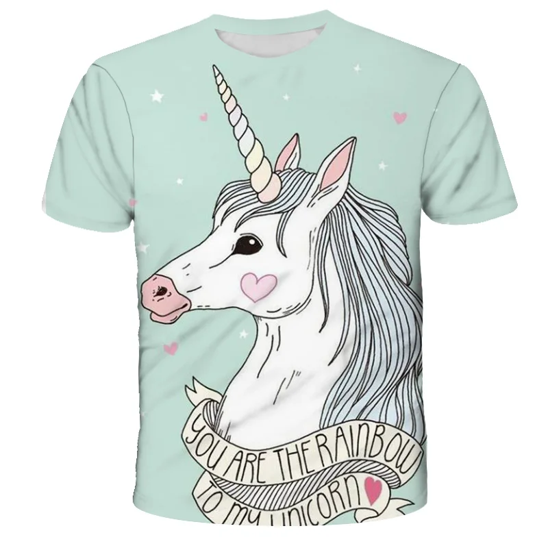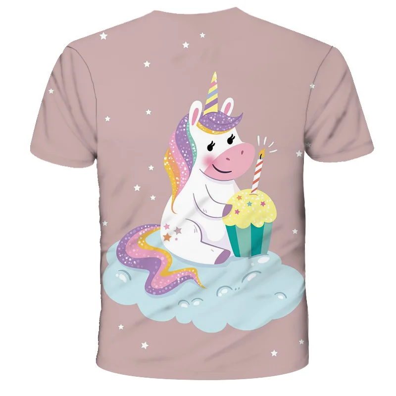 Детская футболка с коротким рукавом и единорогом, на Возраст 4-14 лет