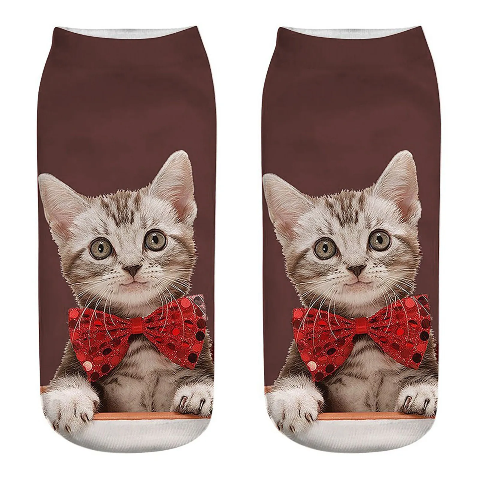 Новинка 2021, модные Забавные милые короткие носки унисекс с 3D-принтом котят, Необычные носки до щиколотки с рисунком кошачьего лица и глубоким вырезом, Прямая поставка