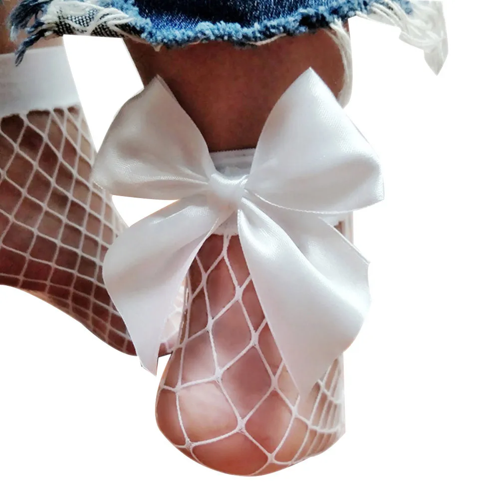 Носки женские сетчатые с бантом, дышащие пикантные сетчатые, в стил...