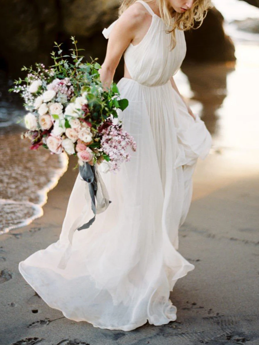 Лето 831, летние платья цвета слоновой кости с лямкой на шее, а-силуэт, Пляжное Платье для свадебной вечеринки в пол, женское платье, бесплатная доставка