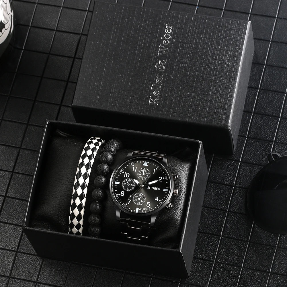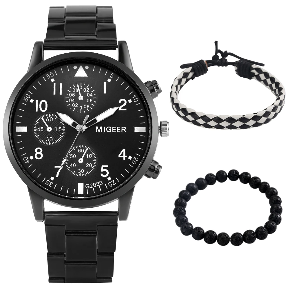 Набор модных мужских часов и браслетов, мужской черный выпуск из 3 ...