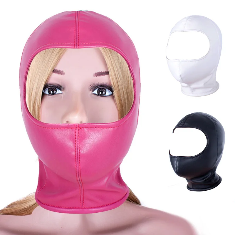 Искусственная кожа открытая маска на Лицо Капюшон, БДСМ маска на голову, маска для вечеринки косплей, Фетиш раб бондаж Gimp эротические интимные игрушки для женщин и мужчин