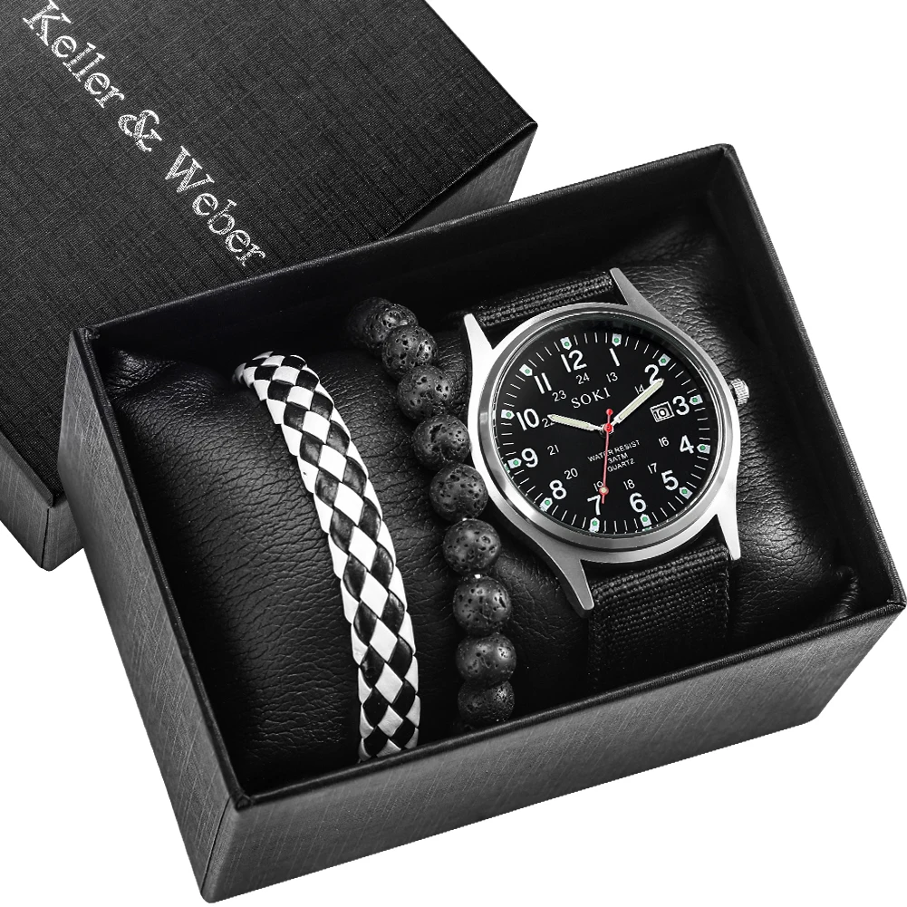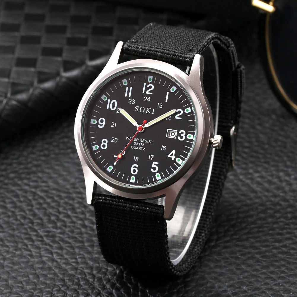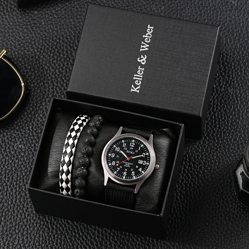 Спортивные модные мужские часы, набор кварцевых наручных часов, наручные часы с нейлоновым ремешком, браслет из нержавеющей стали, календарь, часы для деловых мужчин, лучший подарок