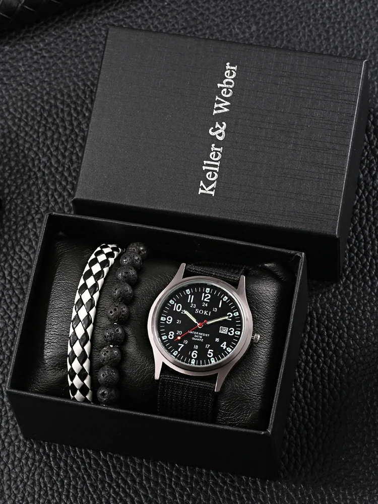 Набор модных мужских часов и браслетов, мужской черный выпуск из 3 ...