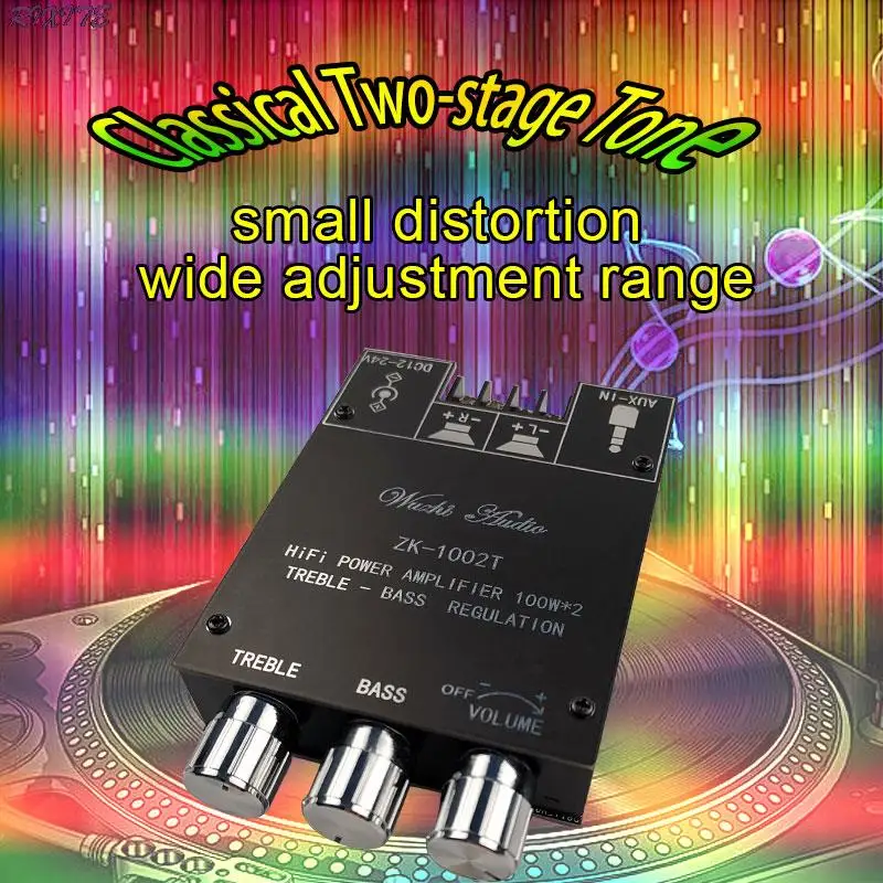 ZK-1002T Bluetooth 5,0 панель усилителя сабвуфера 2*100 Вт, 2,0 каналов, высокая мощность, Плата усилителя звука, стерео усилитель басов