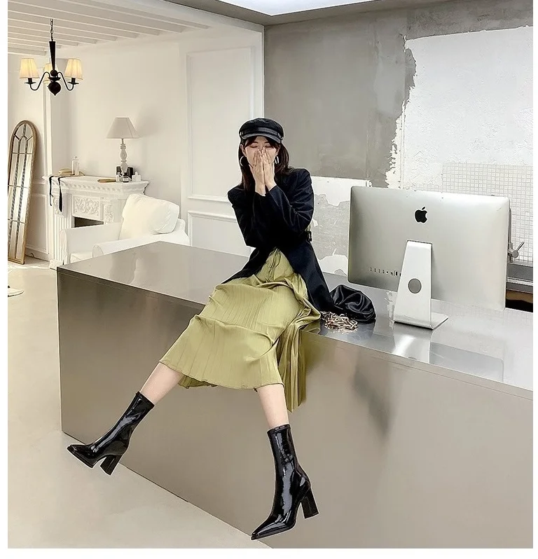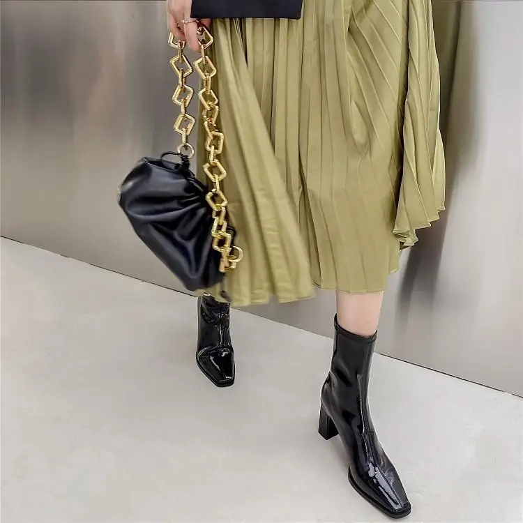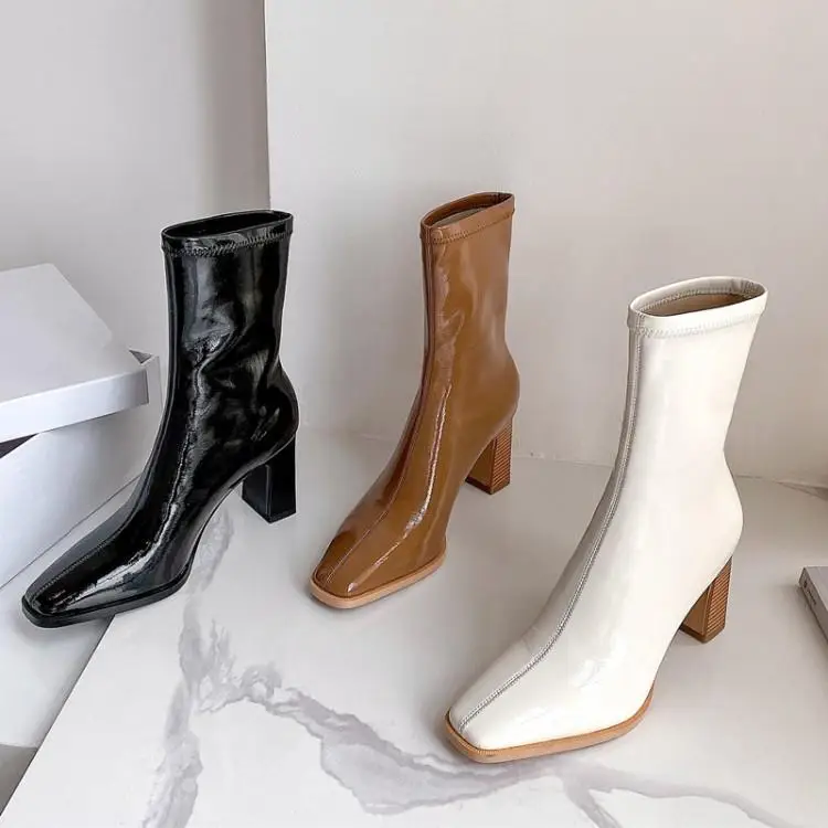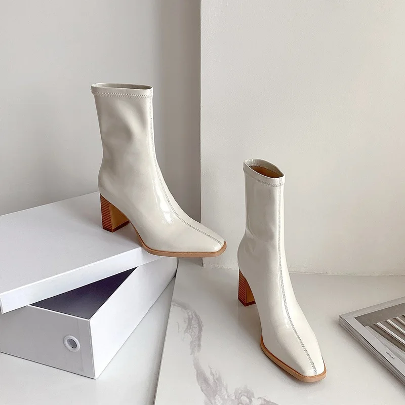 Ботинки EOEODOIT женские кожаные, квадратный носок, без застежки, на блочном каблуке, короткие сапоги, осень