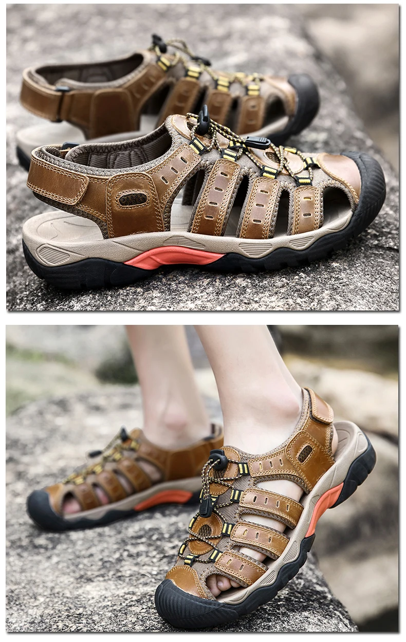 Сандалии мужские кожаные Нескользящие, роскошные брендовые удобные уличные босоножки в римском стиле, повседневные, большой размер 48, лето 2021