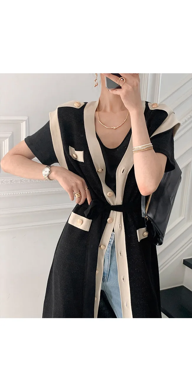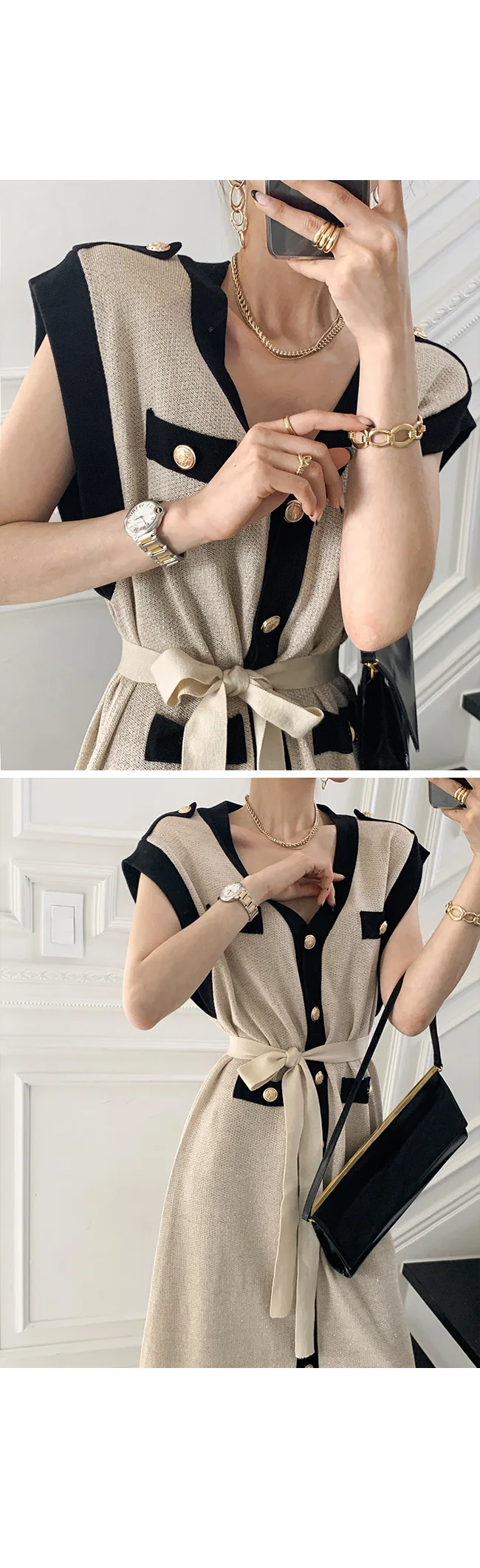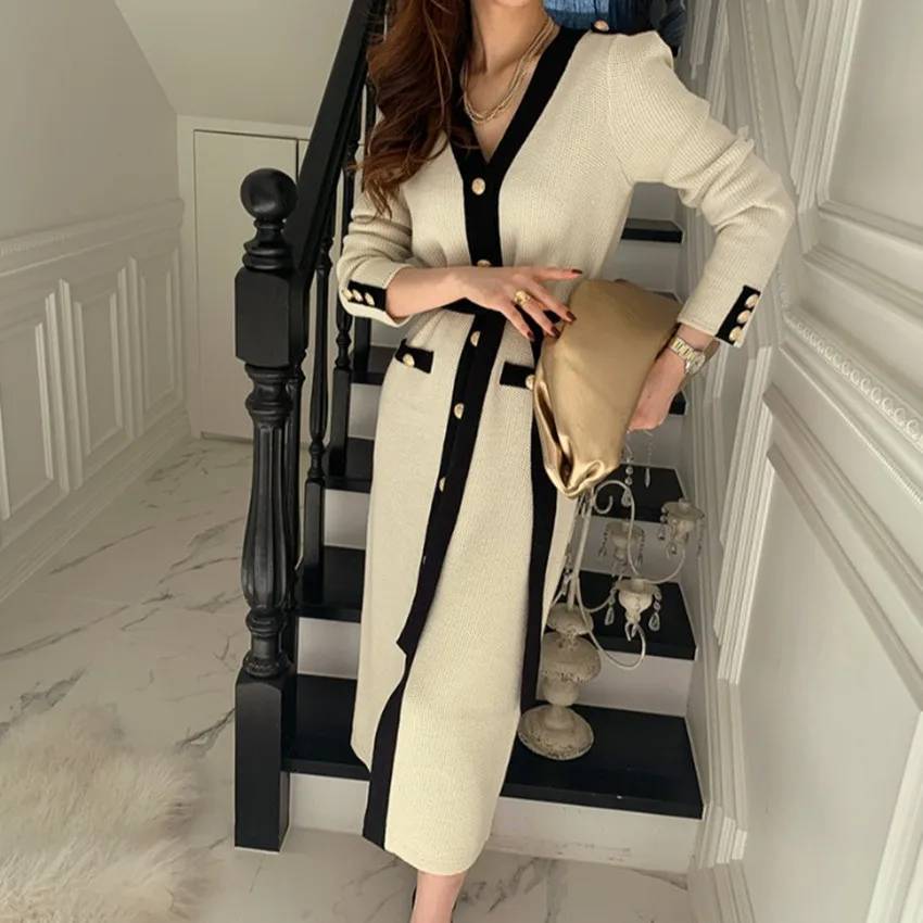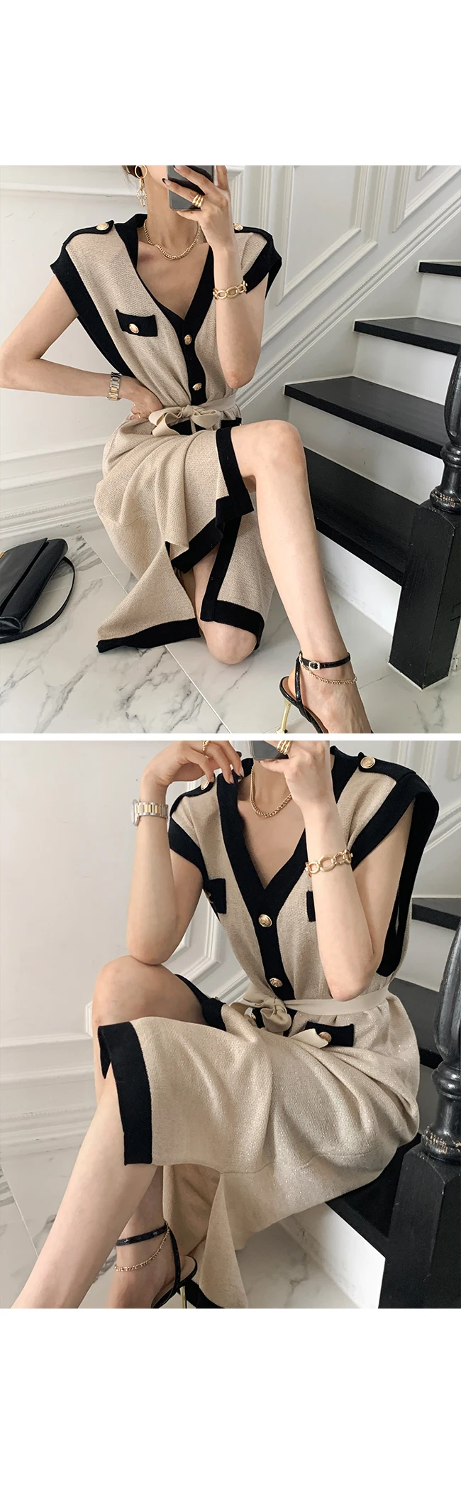 Женское трикотажное платье-кардиган, Элегантное однобортное облегающее платье до середины икры с V-образным вырезом и поясом, Осень-зима 2019