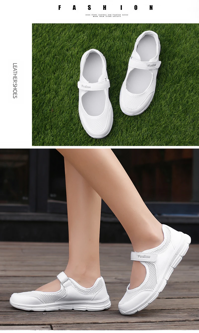 Женские кроссовки на плоской подошве, летние, дышащие, белые, повсе...
