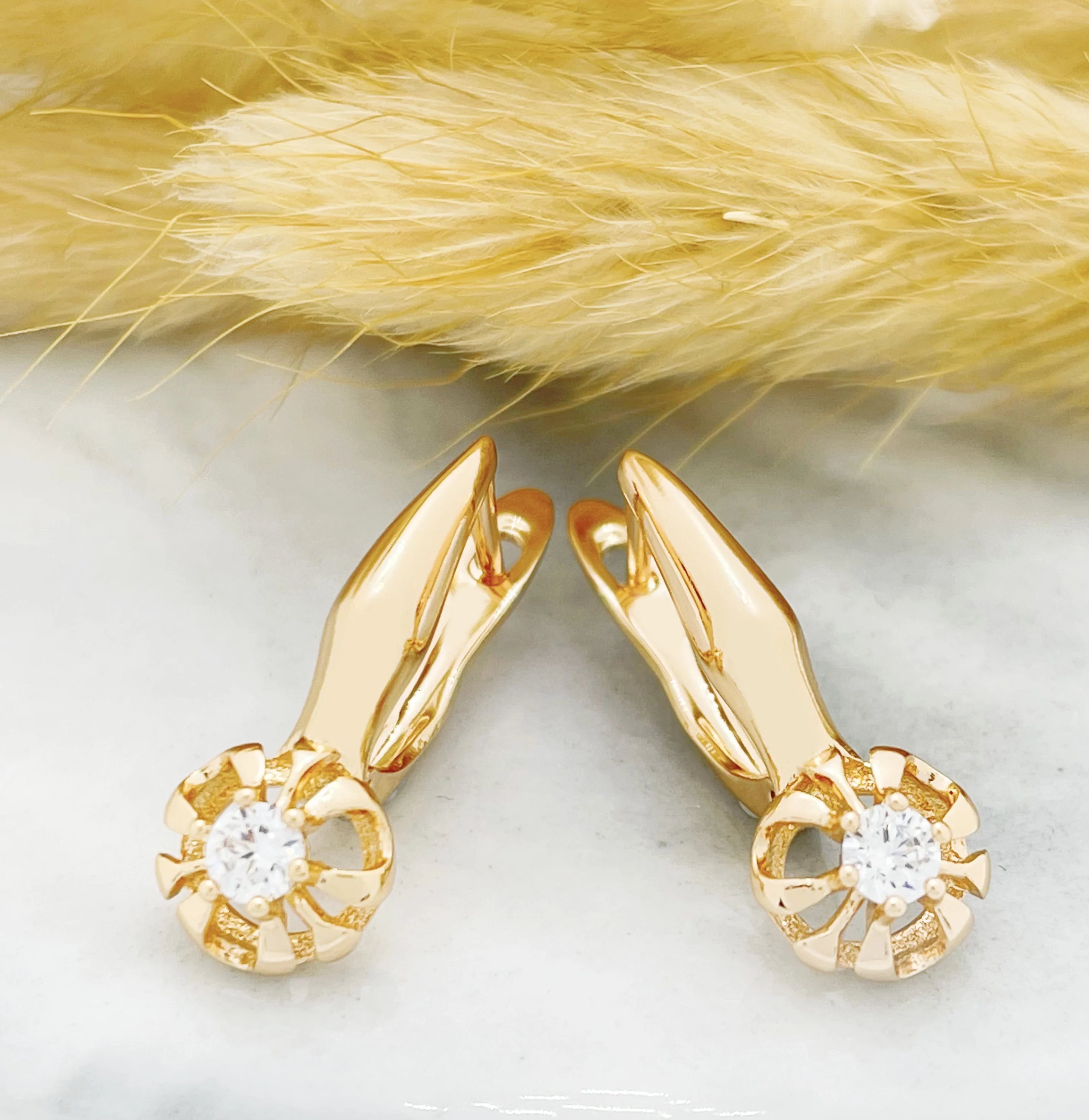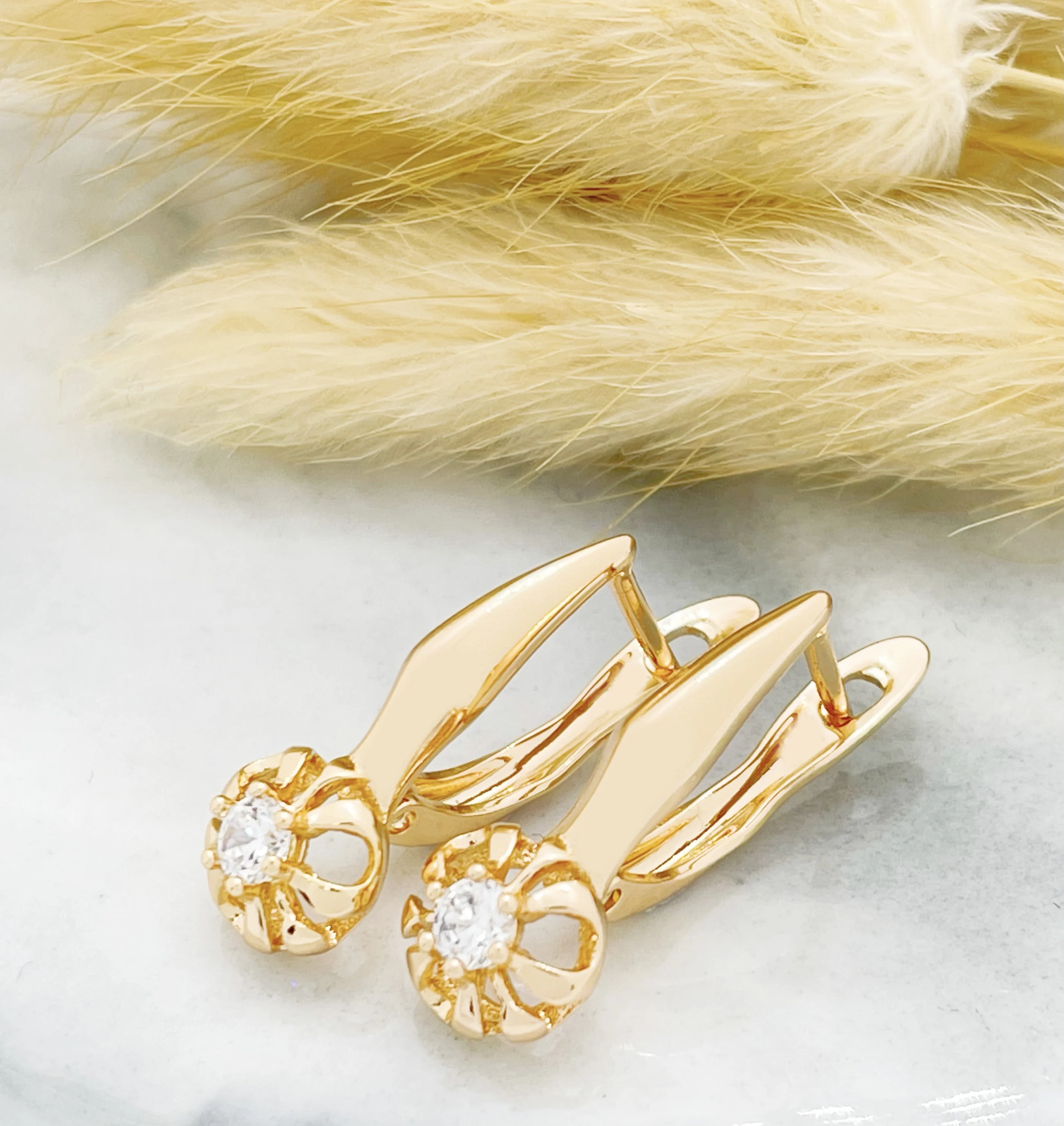 Женские серьги из розового золота 585 пробы, с натуральным Цирконом