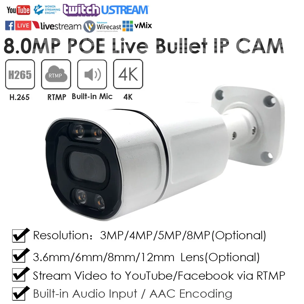 Наружная IP-камера видеонаблюдения, 8 Мп, 4K, аудио, H.265, 25 кадровс