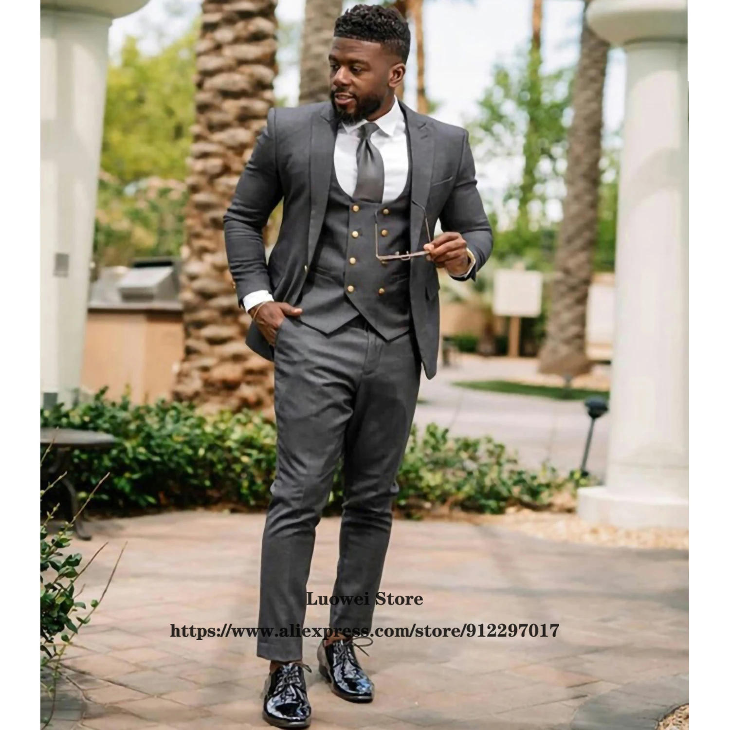 Мужские Узкие Костюмы, Классические Комплекты из 3 предметов, повседневный свадебный смокинг для жениха, мужской официальный деловой блейзер (пиджак + жилет + брюки)