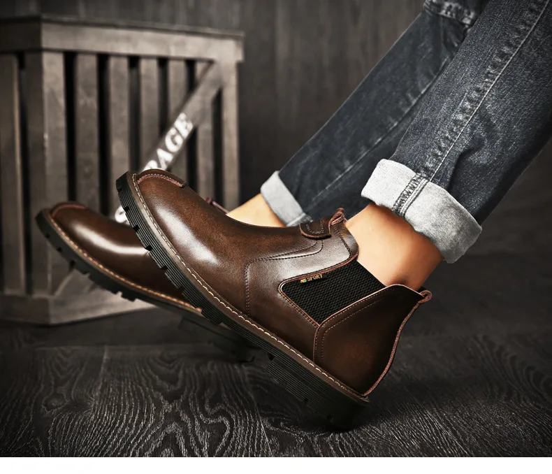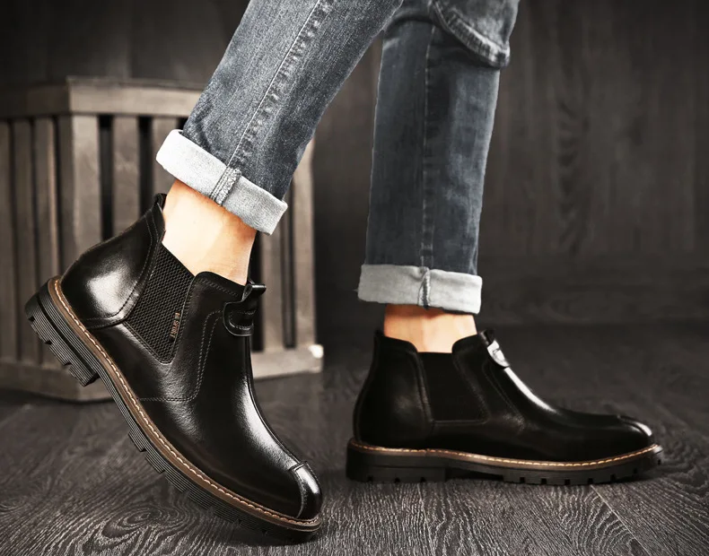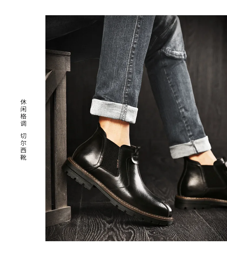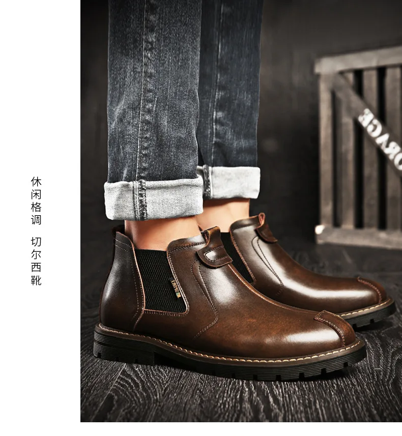 Ботинки Челси мужские из натуральной кожи, дышащие полусапожки на платформе, ковбойские полусапожки, черные коричневые, в Корейском стиле