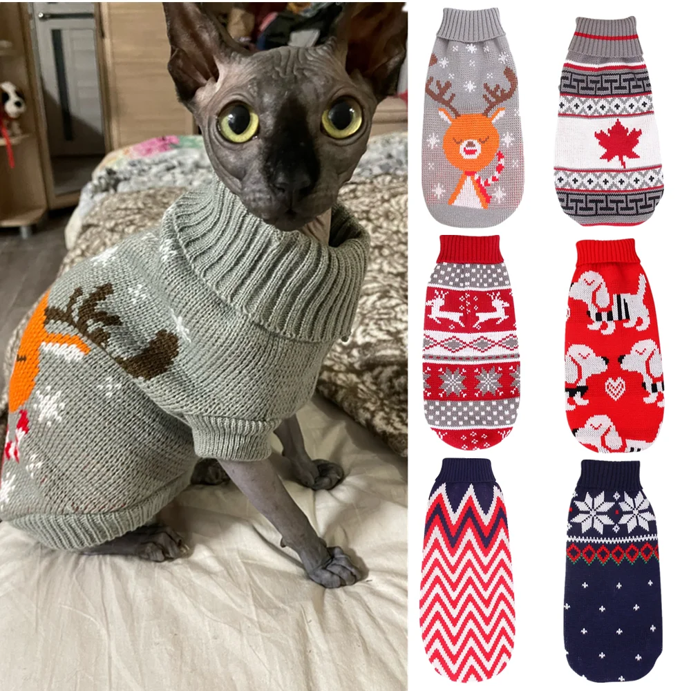 Рождественская собака Кот свитер со щенком; Зимняя теплая одежда дл...