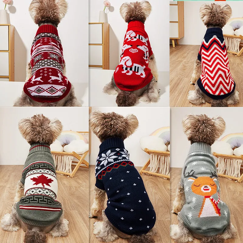 Рождественская винтажная одежда для собак, вязаный теплый свитер-во...