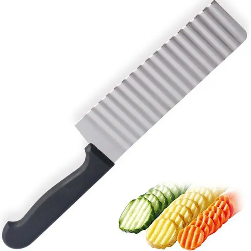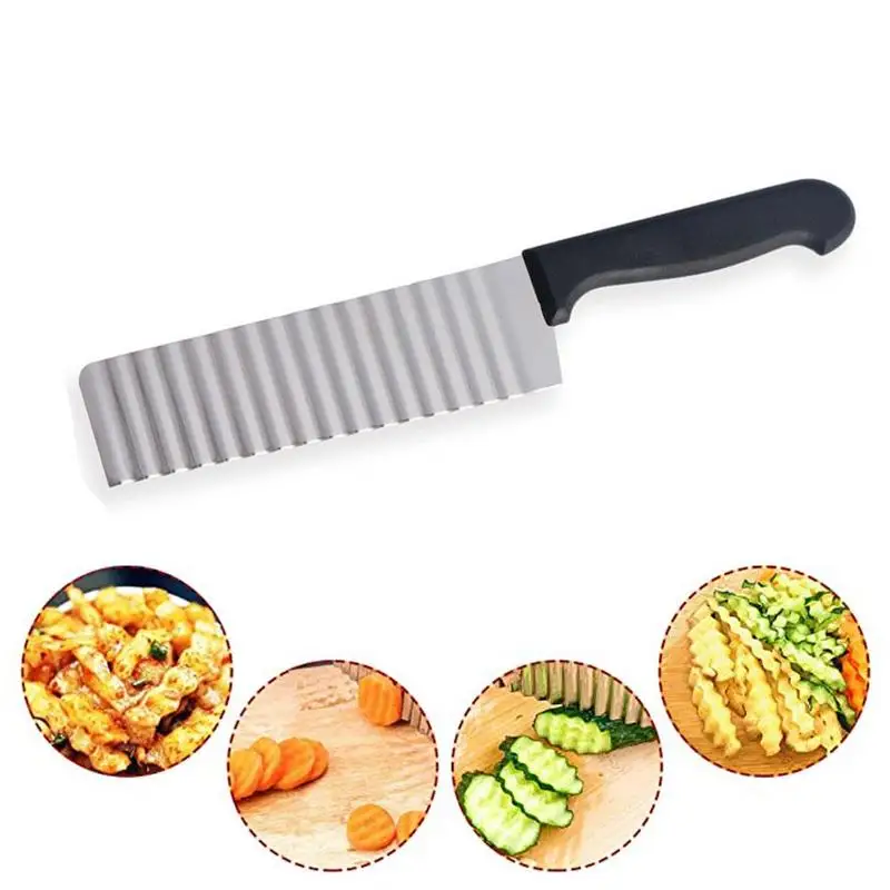 1 шт., Серебристый стальной нож для резки картофеля, для теста, овощей, фруктов, волнистый слайсер, нож для картофеля, кухонные инструменты, гофрированный Z2G0