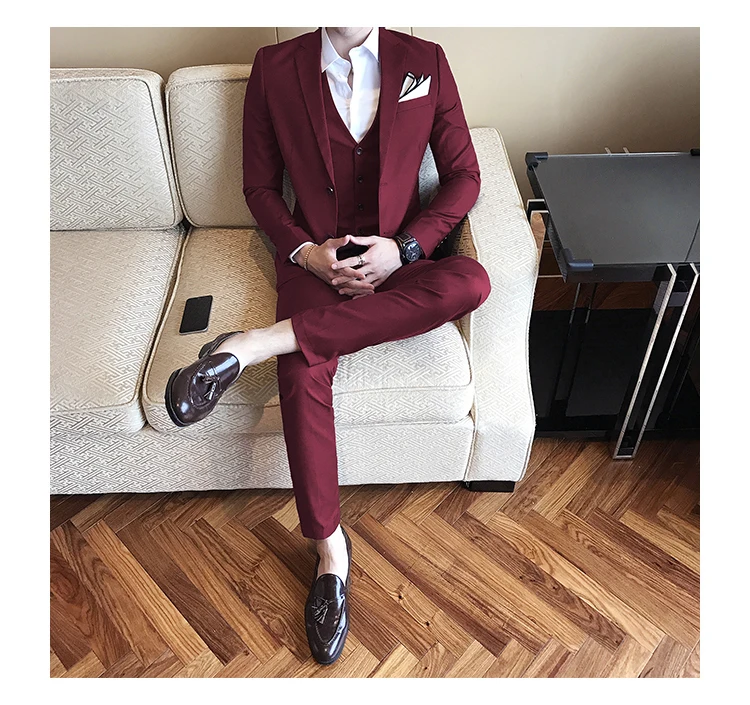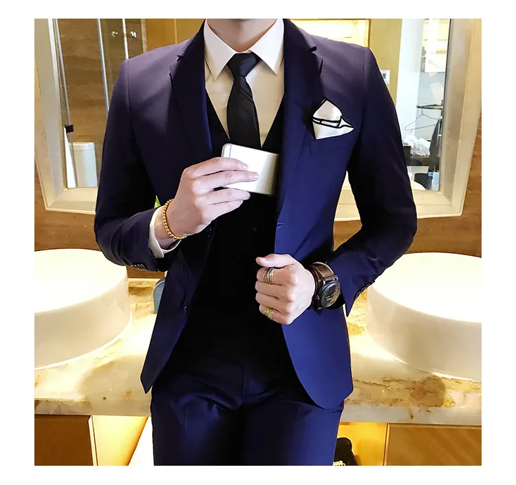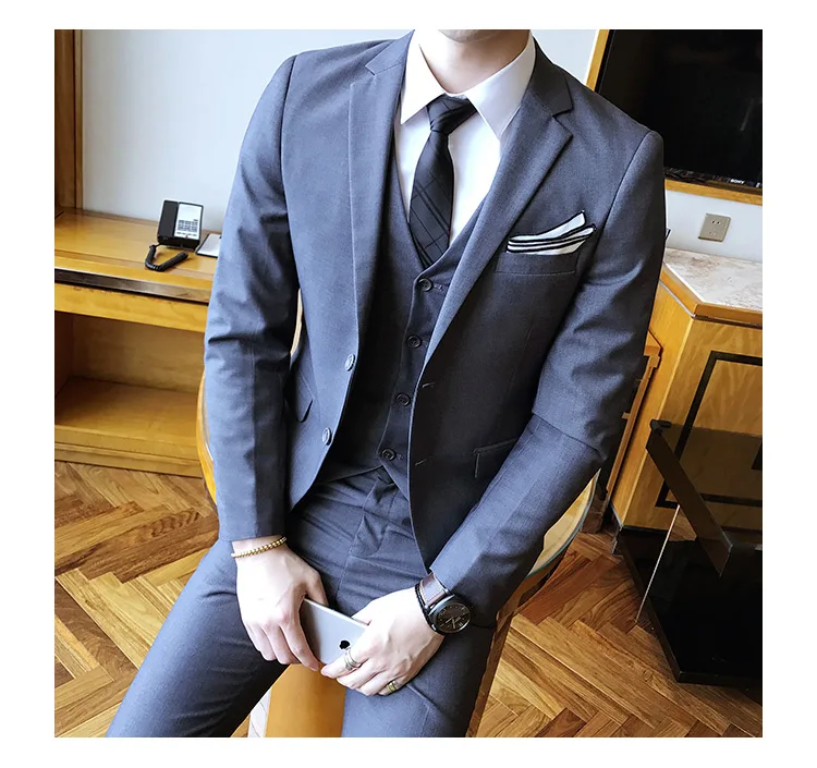 Комплект из трех предметов, Блейзер, жилет и брюки, модный мужской ...