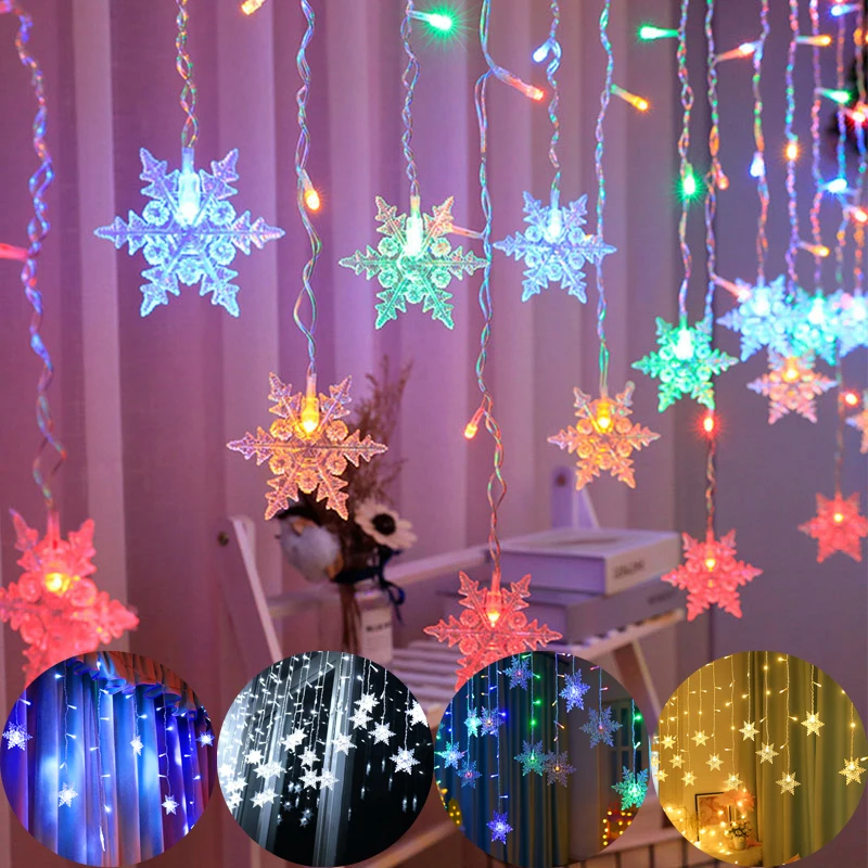 2022 Новогоднее и Рождественское украшение, светодиодная гирлянда со снежинками, с вилкой, 5 м, свисающая на 0,4-0,6 м, для украшения дома Вечерние