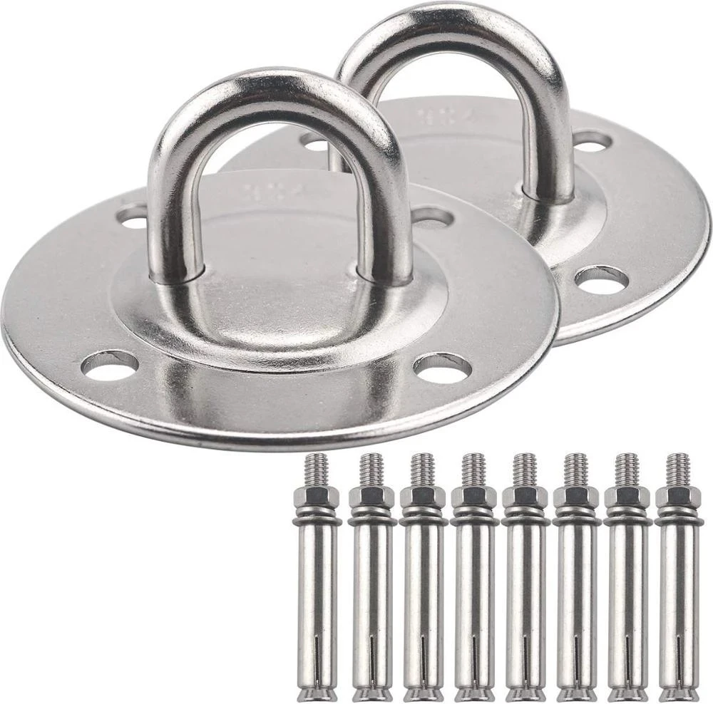 -Все детали изготовлены из высококачественной нержавеющей стали (фурнитура) -Прочный и полный: поддерживает 2000 фунтов при правильном подключении (статический вес 1000 фунтов на один глаз) делает их идеальными дополнениями для спальни или детской игровой комнаты. -Быстрая и простая установка: Просверлите отверстия и установите комплект. -Универсальный: внутренний или наружный, качайте гамак! Дождь или блеск, Наслаждайтесь жизнью!