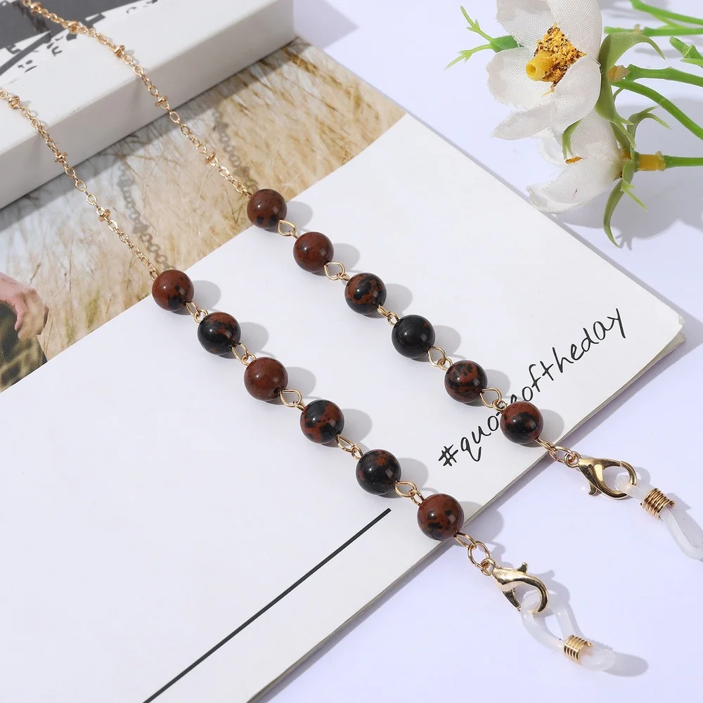Ожерелье-цепочка для очков женское с натуральным камнем и бусинами