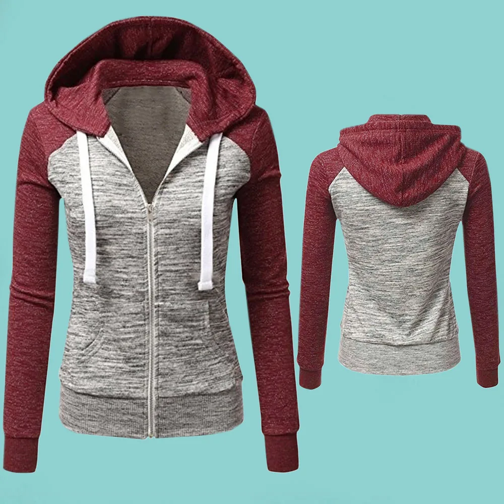Vrouwen Лоскутная толстовка на молнии для осени тонкая с капюшоном ...