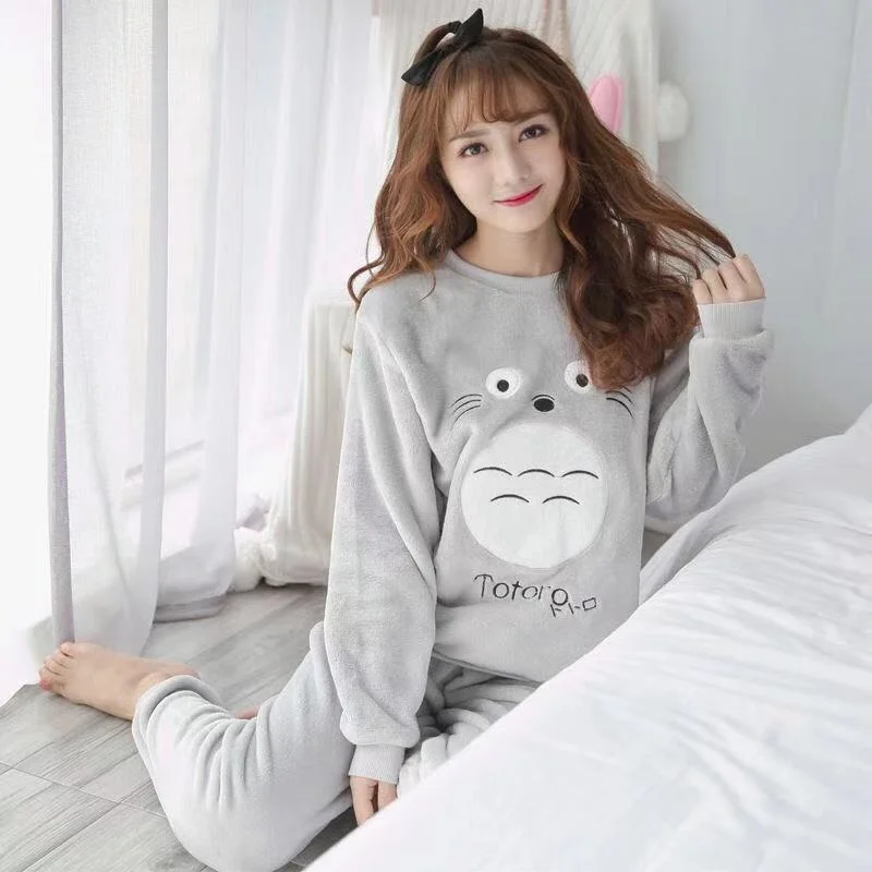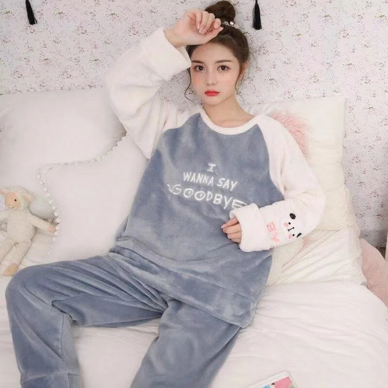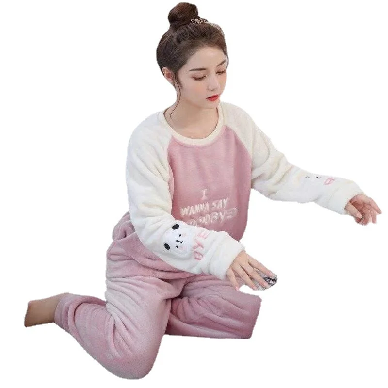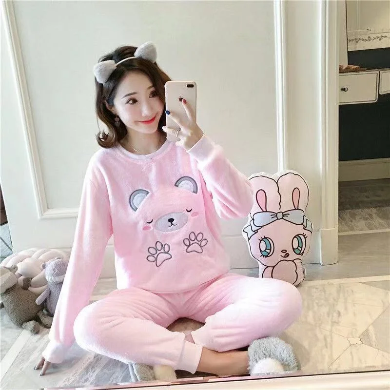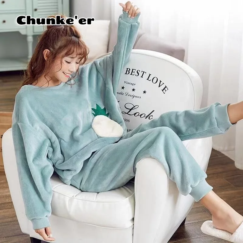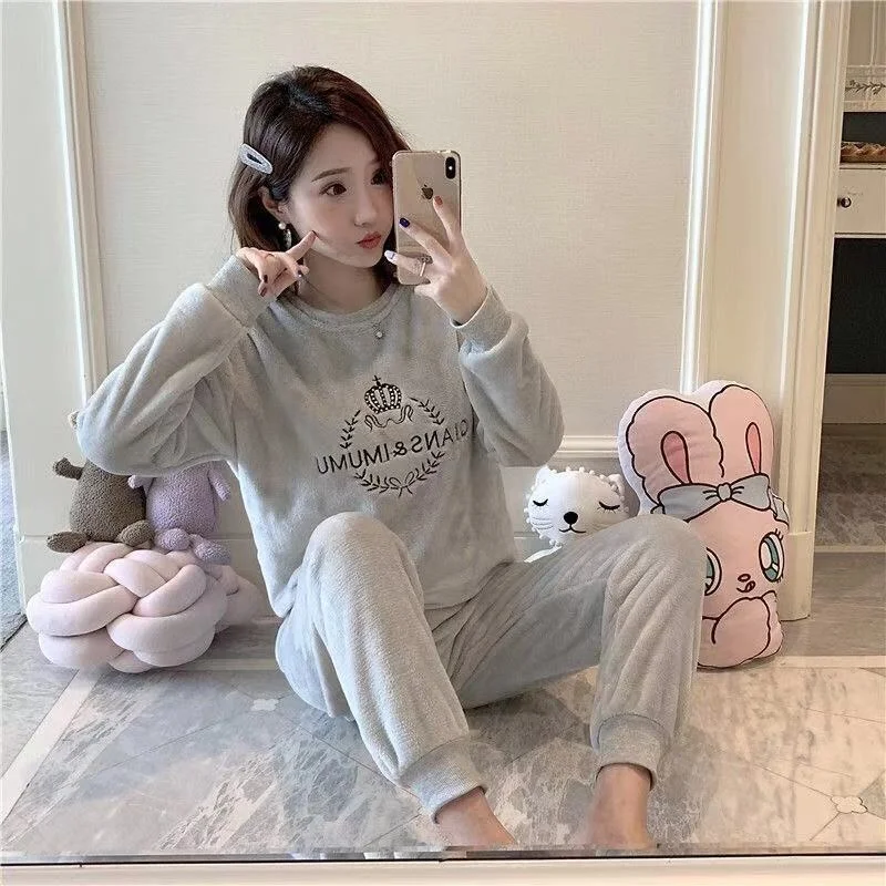 Новый корейский осенне-зимний фланелевый Пижамный костюм с плюшевой подкладкой и утепленный домашний пижамный комплект большого размера