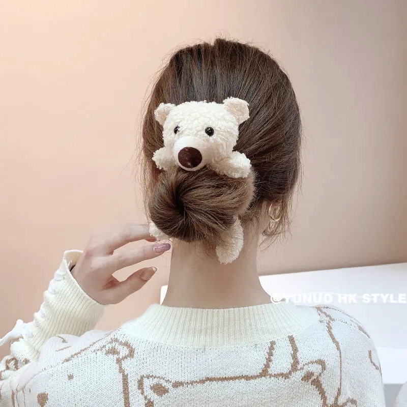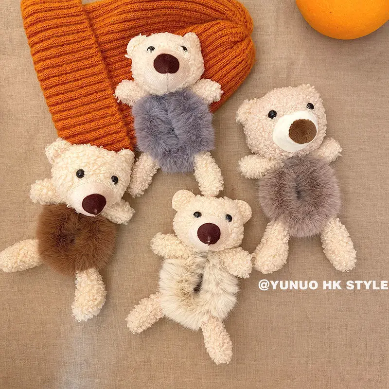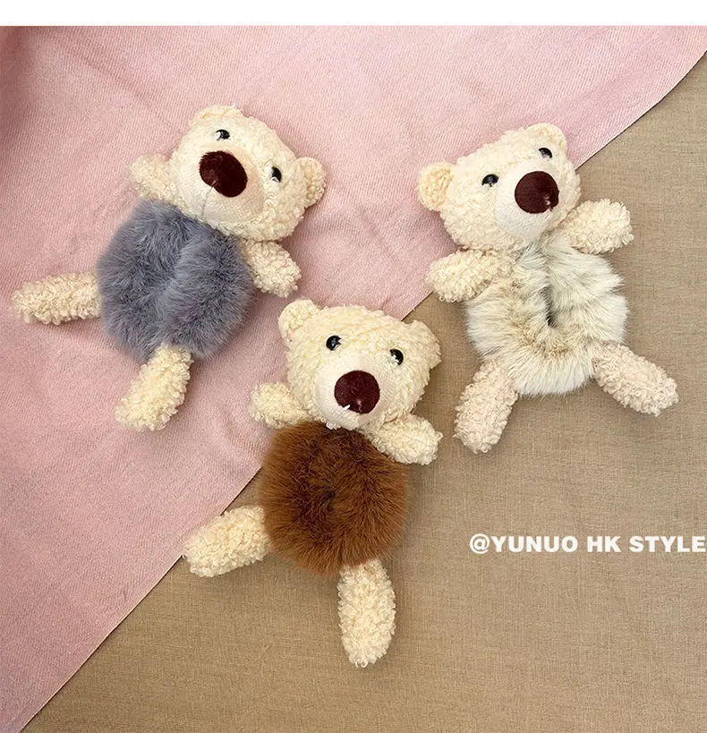 Корейские милые плюшевые заколки для волос в виде медведя для девочек