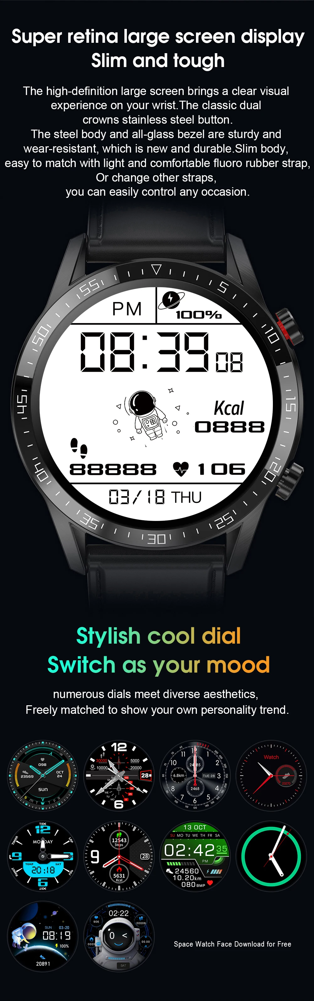 Вы можете выбрать изображение, которое хотите стать вашим циферблатом, и есть много бесплатных циферблатов на выбор из приложения.
