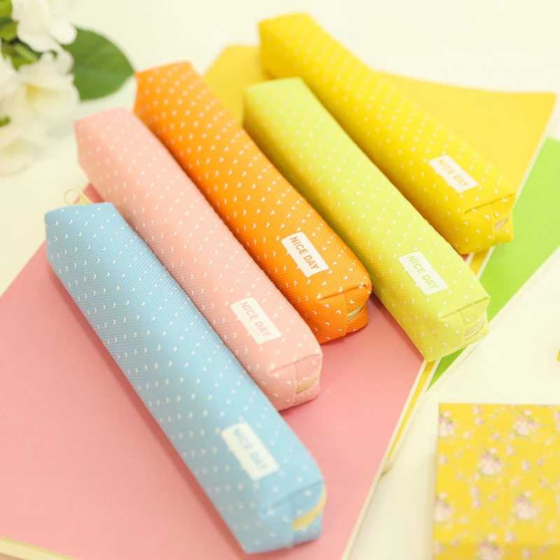 Милый чехол для карандашей карамельных цветов, кавайная Холщовая Сумка в горошек для ручек, канцелярские принадлежности, подарочные принадлежности для девочек, офисные и школьные принадлежности, Canetas