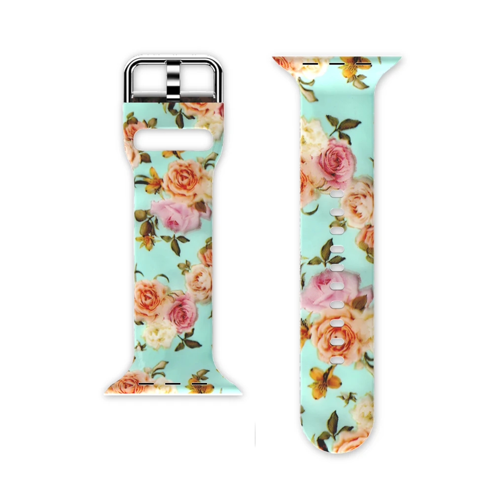 Ремешок силиконовый для Apple watch 6 SE 38 мм 44 мм, сменный спортивный браслет с цветным принтом для iwatch 5 4 3 40 мм 42 мм
