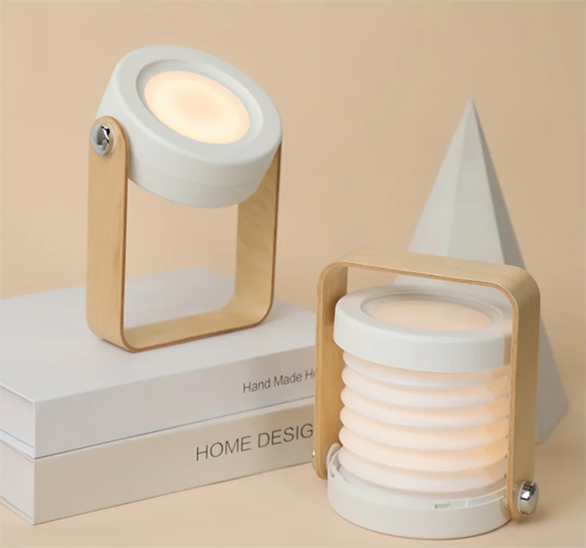 Многофункциональная интеллектуальная лампа: Может использоваться как настольная лампа, прикроватная лампа, фонарик при складывании или повороте, а деревянная ручка может быть как ручка, как вешалка для пальто.