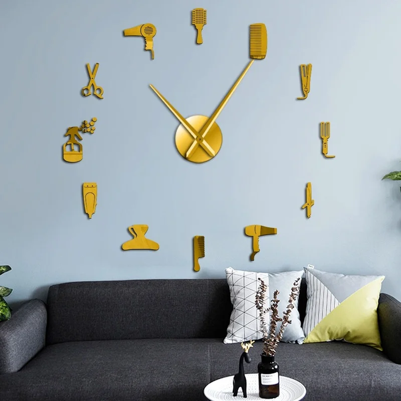 Парикмахерский инструмент для волос, большие настенные часы сделай сам, часы с наклейками, безрамные большие часы для салона красоты, парикмахерские Нечеткие декоративные часы
