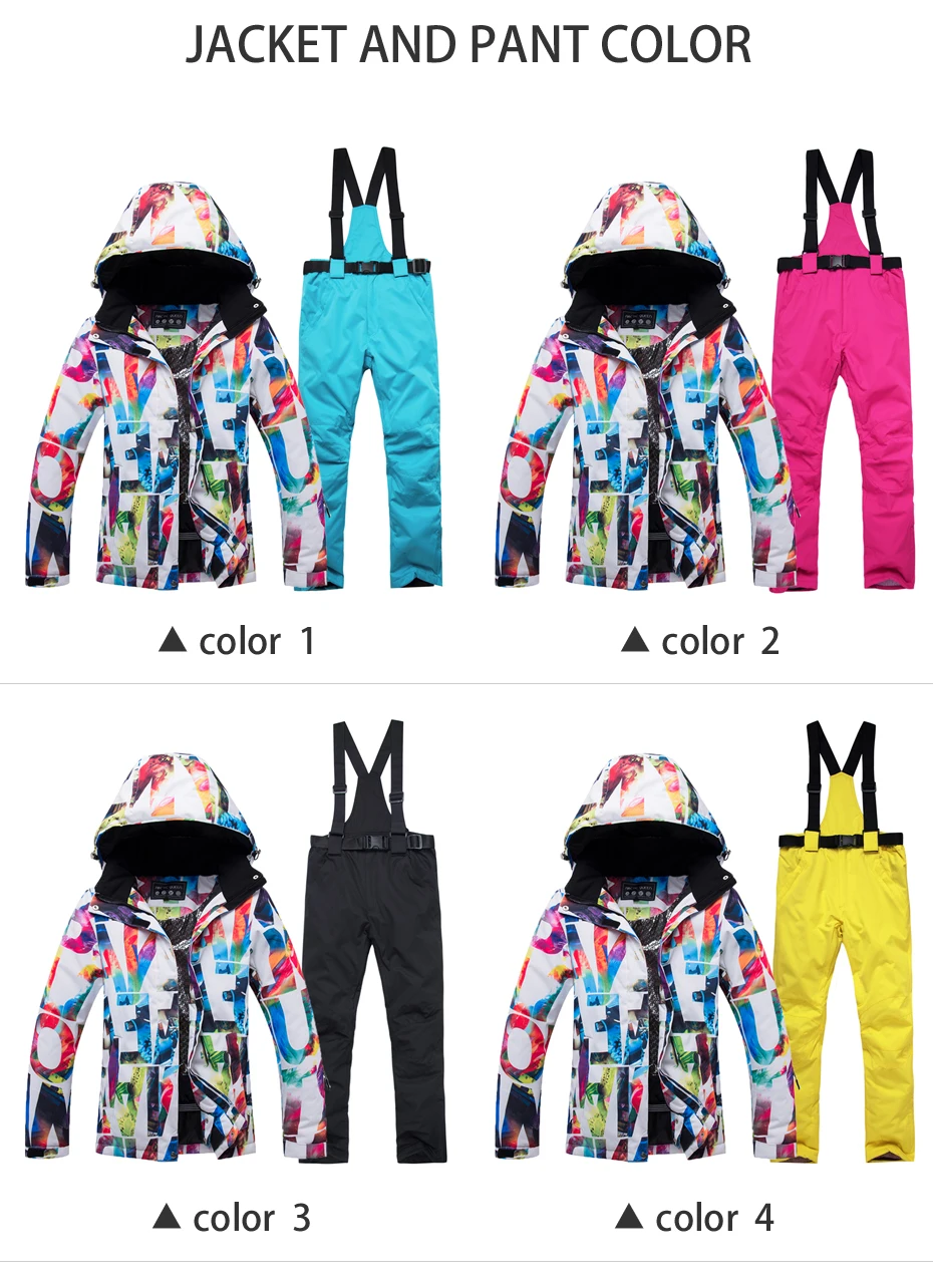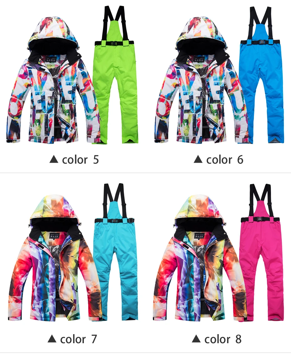 Лыжный костюм, теплый женский водонепроницаемый, с защитой от ветра, костюм для катания на лыжах и сноуборде, комплект верхней одежды: куртка и брюки