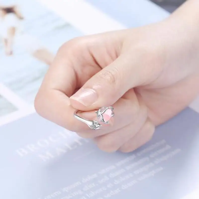 Изысканное и прекрасное высококачественное регулируемое кольцо с розовым опалом из циркония с лисой женское платье свитер универсальные ювелирные изделия