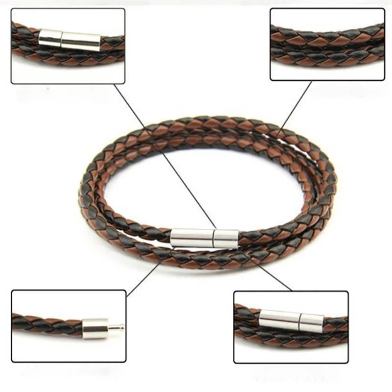 Браслет плетеный из натуральной кожи с магнитными застежками
