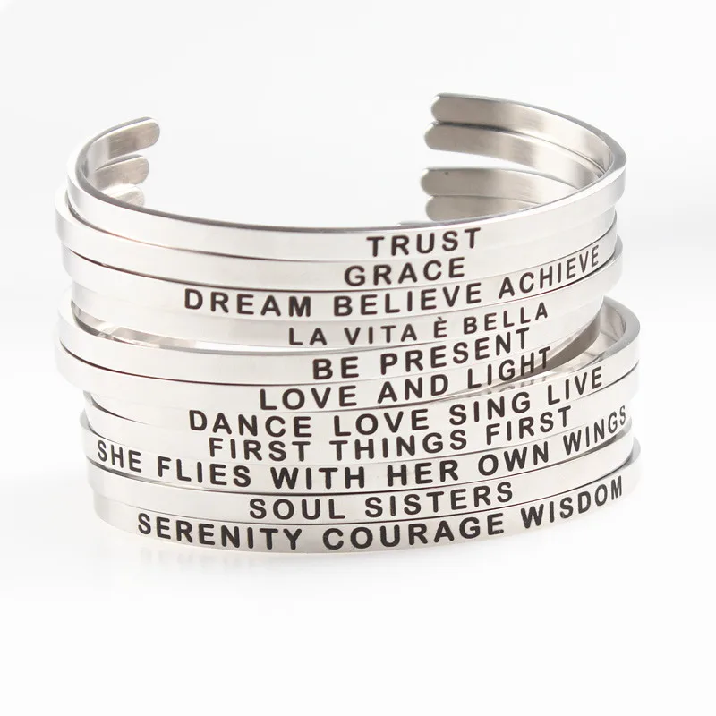Браслеты из нержавеющей стали Hakuna Matata e f g h 4 мм, браслеты с мантрой для мужчин, женщин и мужчин, позитивное вдохновляющее цитата
