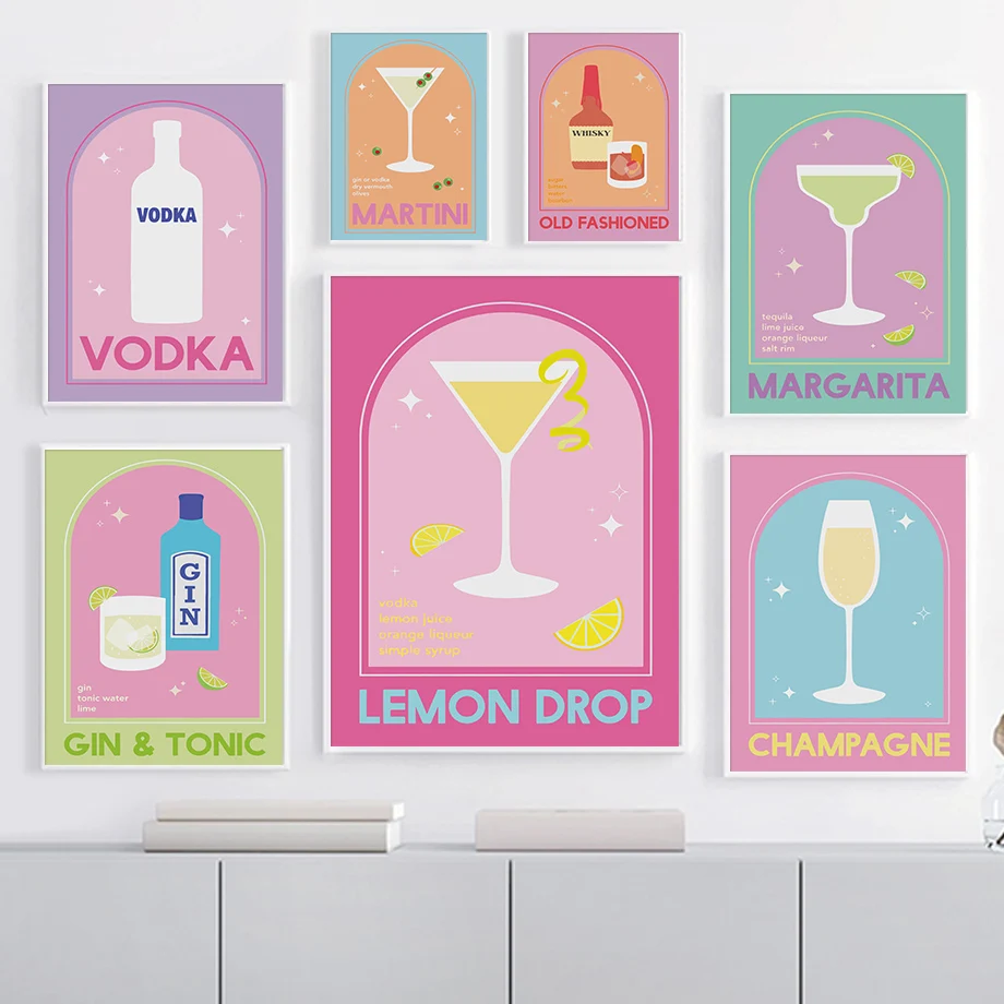 Картина на холсте джин водка, шампанское, текила, лимон, коктейль, настенные картины, скандинавские постеры и принты, настенные картины для украшения бара и комнаты