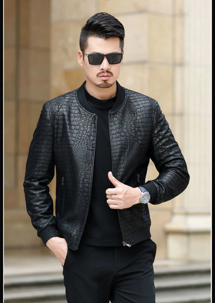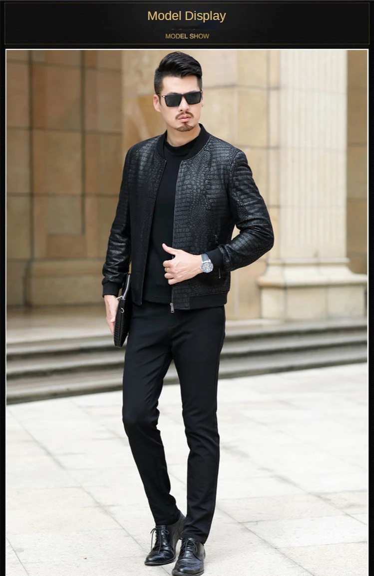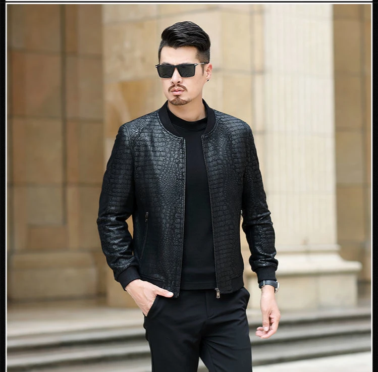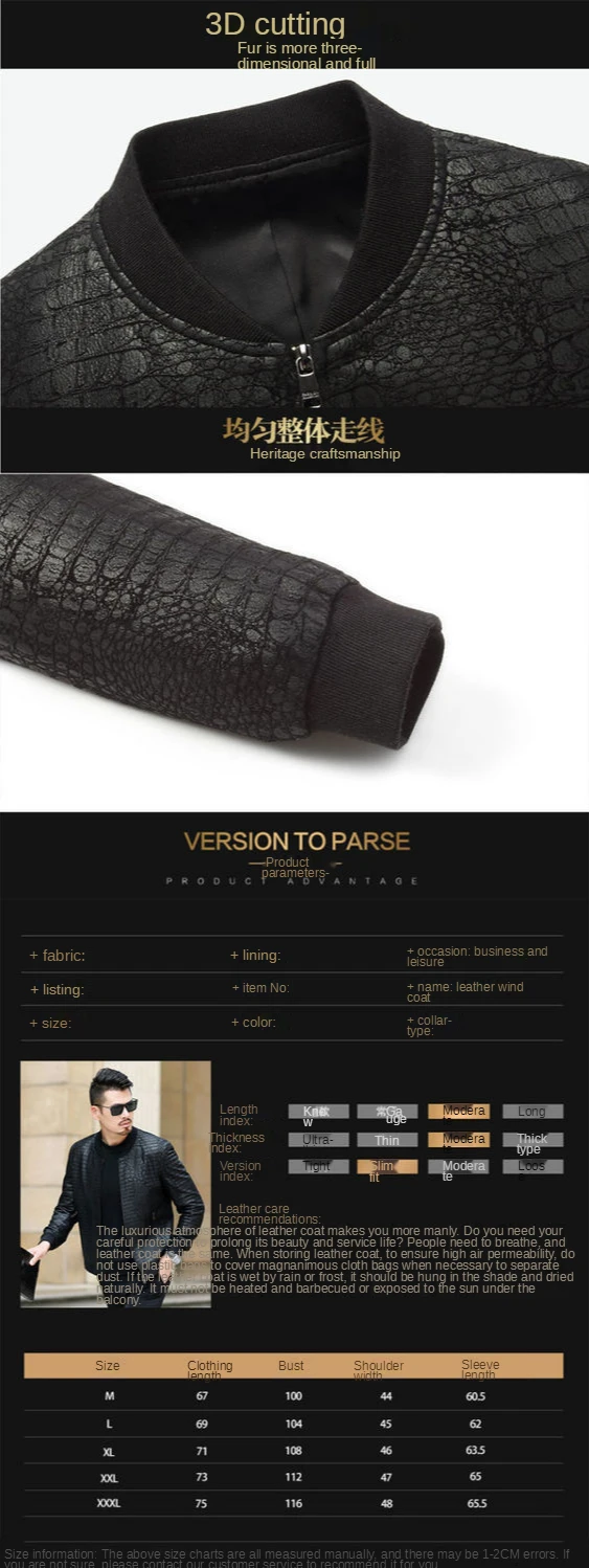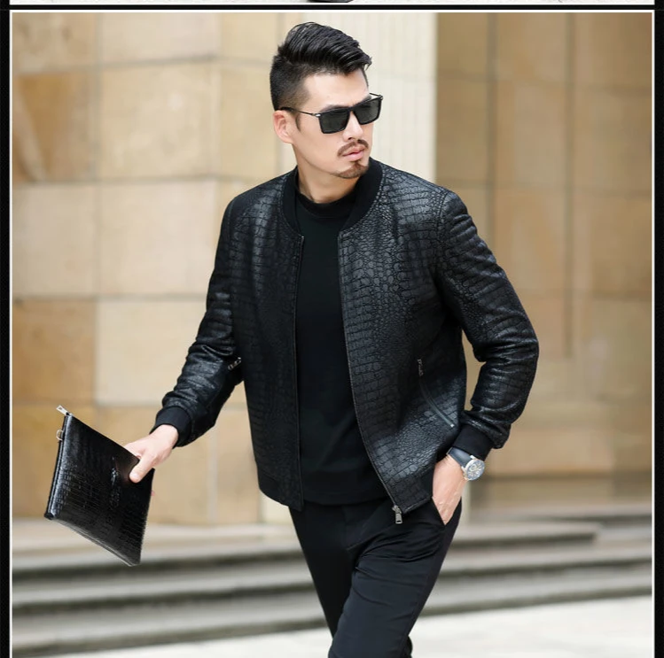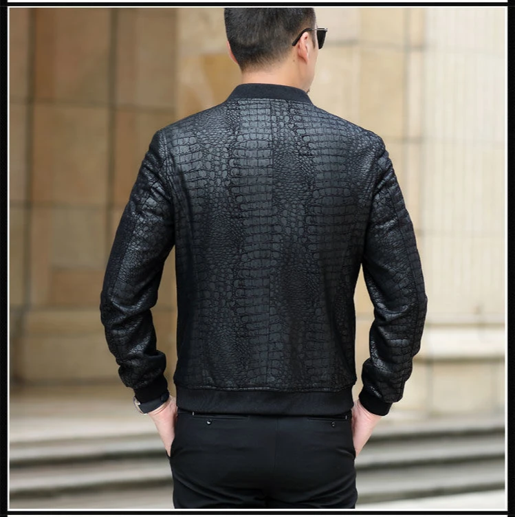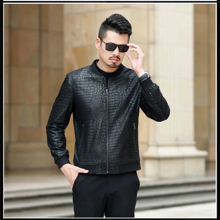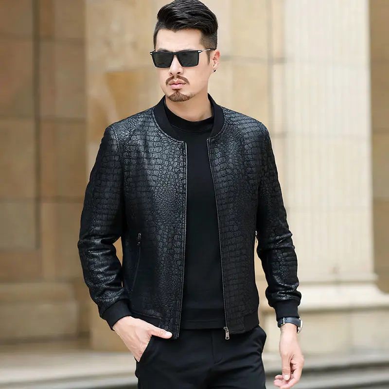 Кожаное пальто для мужчин весна-осень Молодежный корейский стиль однотонный кардиган с воротником-стойкой и длинными рукавами кожаная куртка
