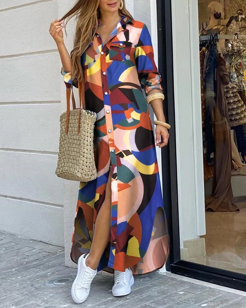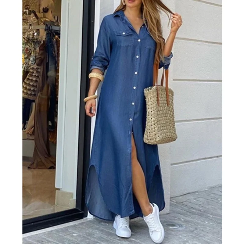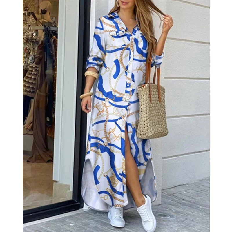 HOUZHOU размера плюс Повседневное платье макси для женщин 4XL 5XL с длинным рукавом платье-рубашка осеннее офисное Свободное длинное платье для вечерние